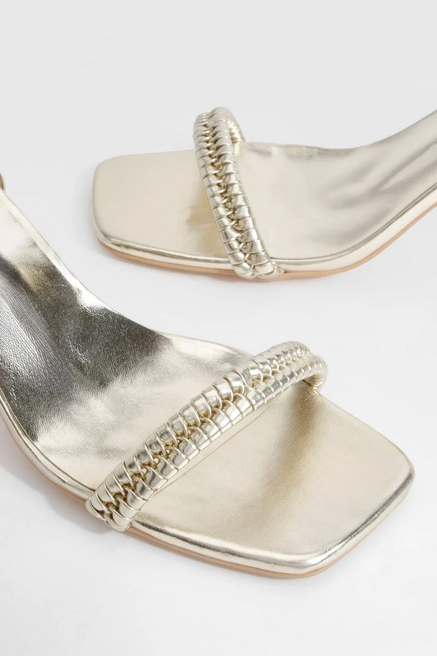 BOOHOO Metallic Woven Strap Block Heel Sandals