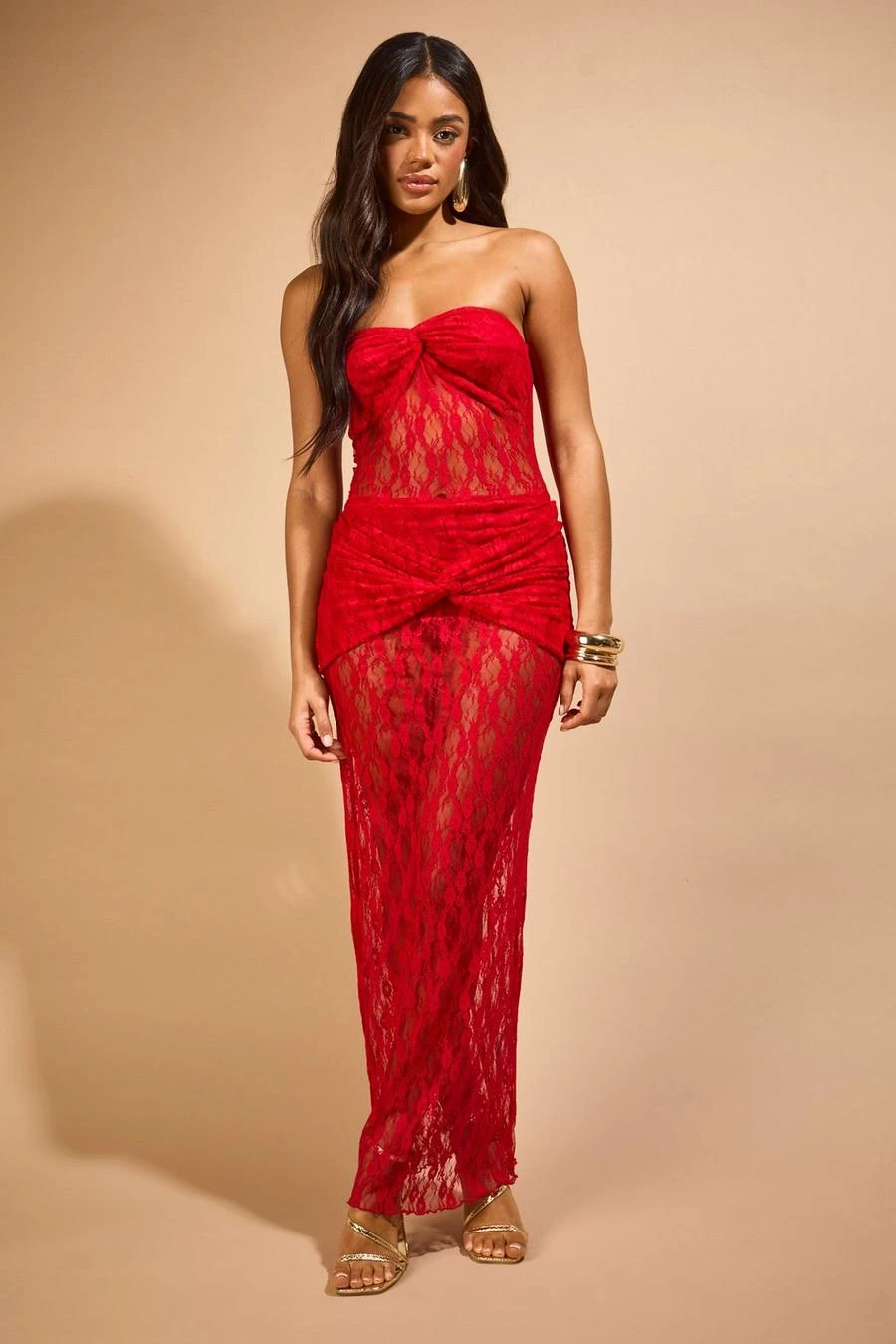 BOOHOO Molly Smith Bandeau Twist Lace Maxi Dress