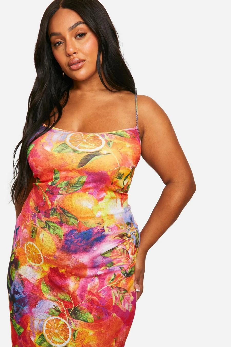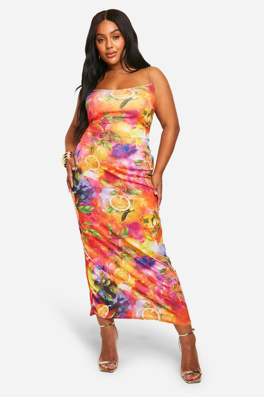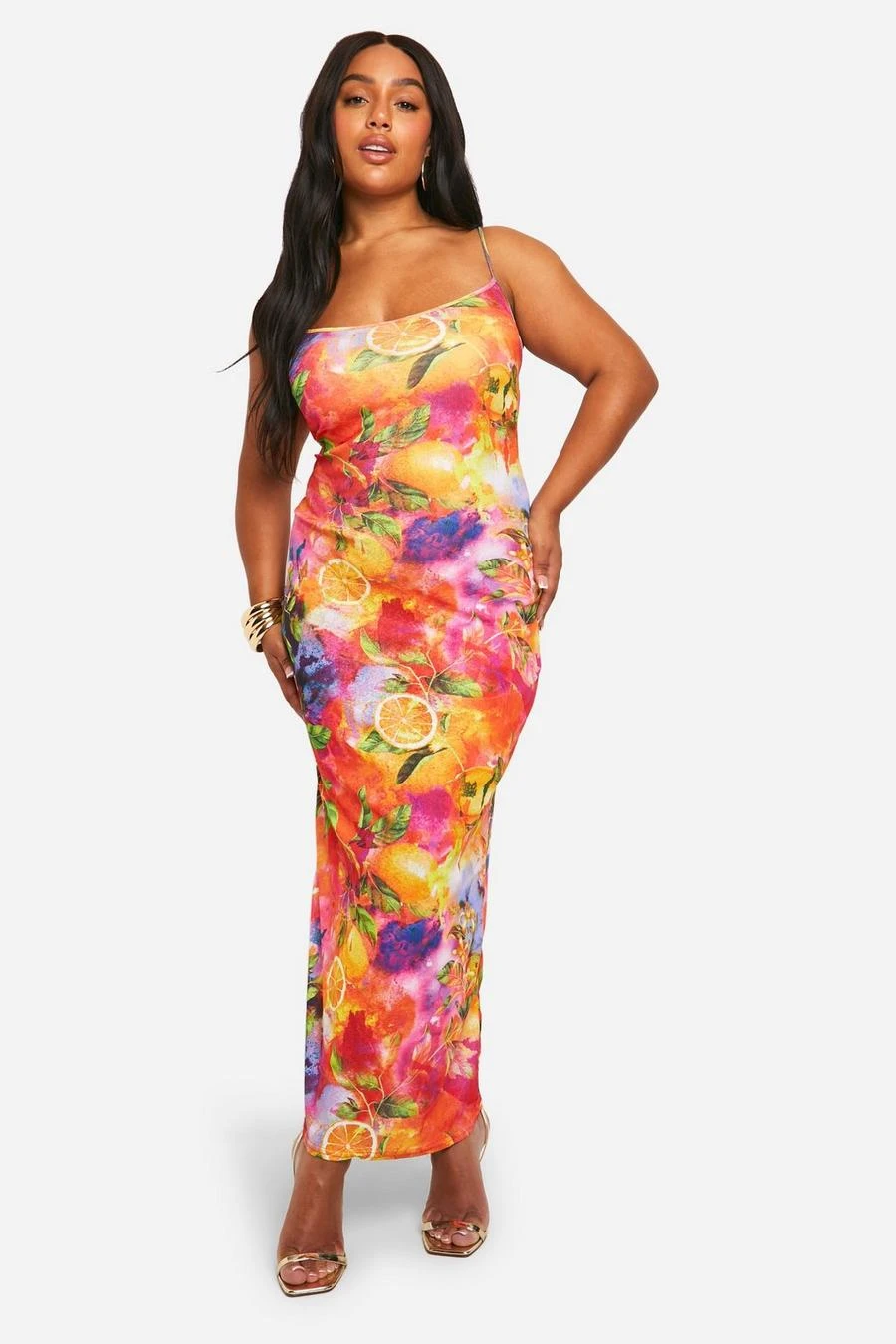BOOHOO Molly Smith Plus Fruit Print Onion Skin Maxi Dress