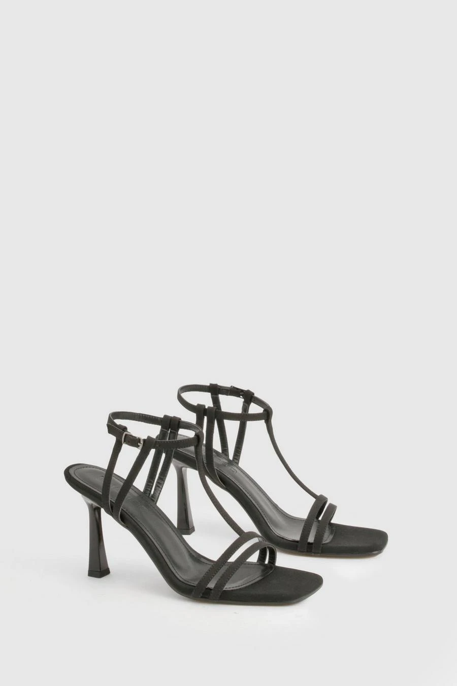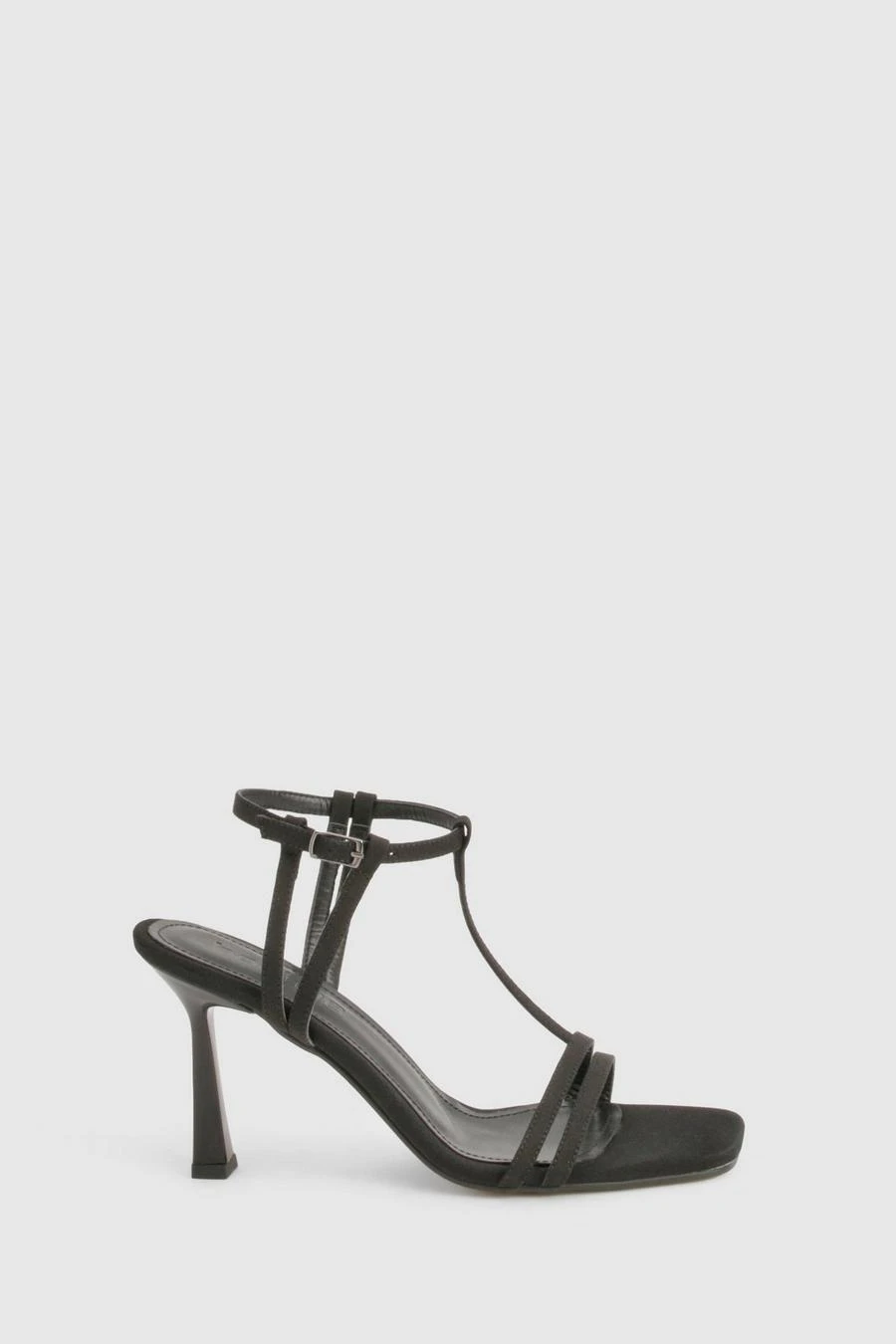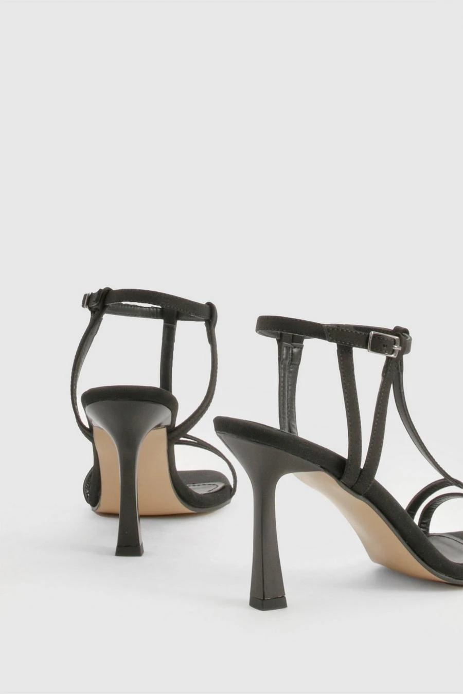 BOOHOO Neoprene T Bar Strappy Square Toe Heels