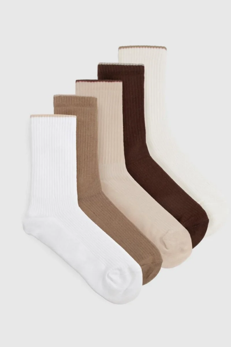 BOOHOO Neutral Thick Ribbed Sock 5 Pack