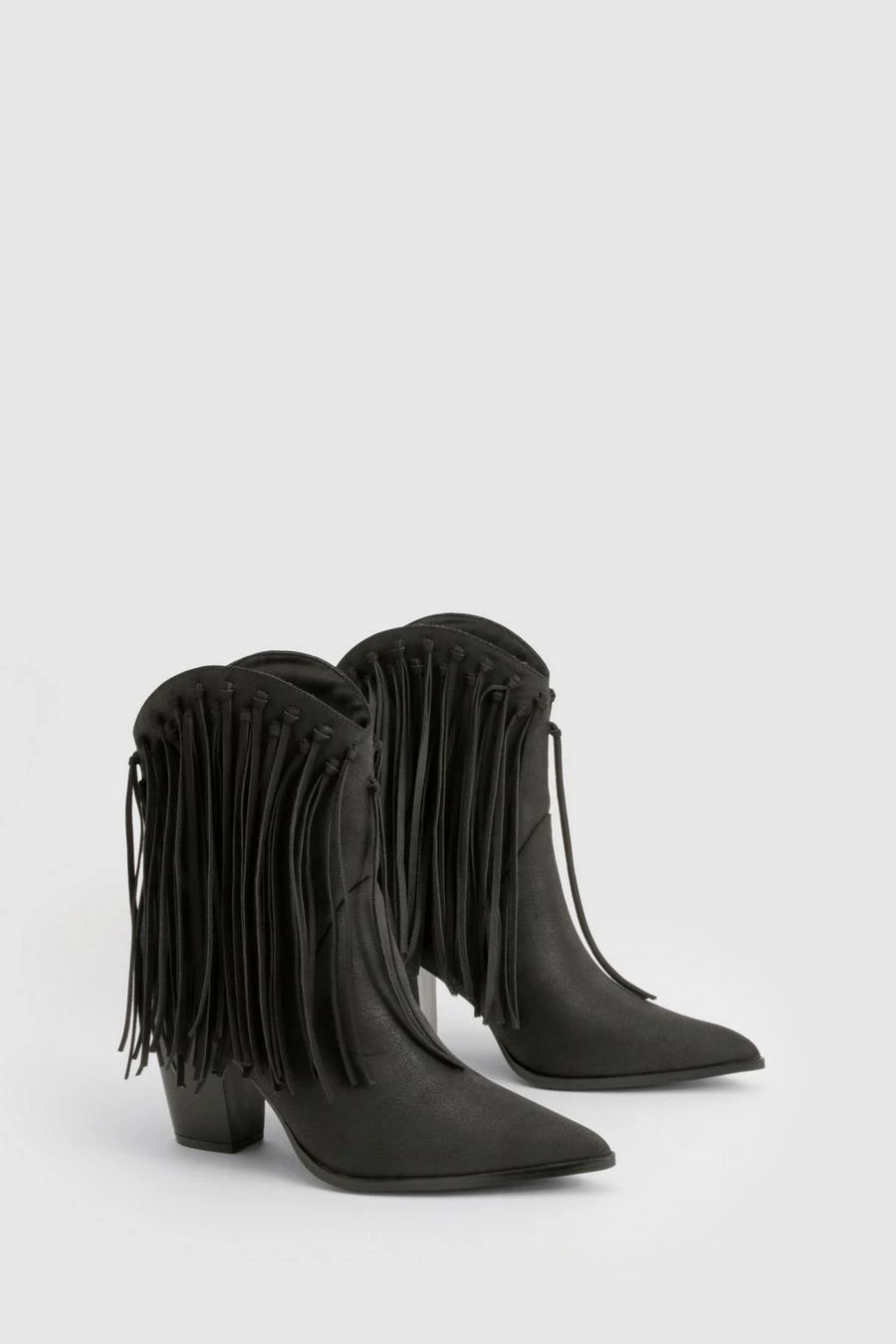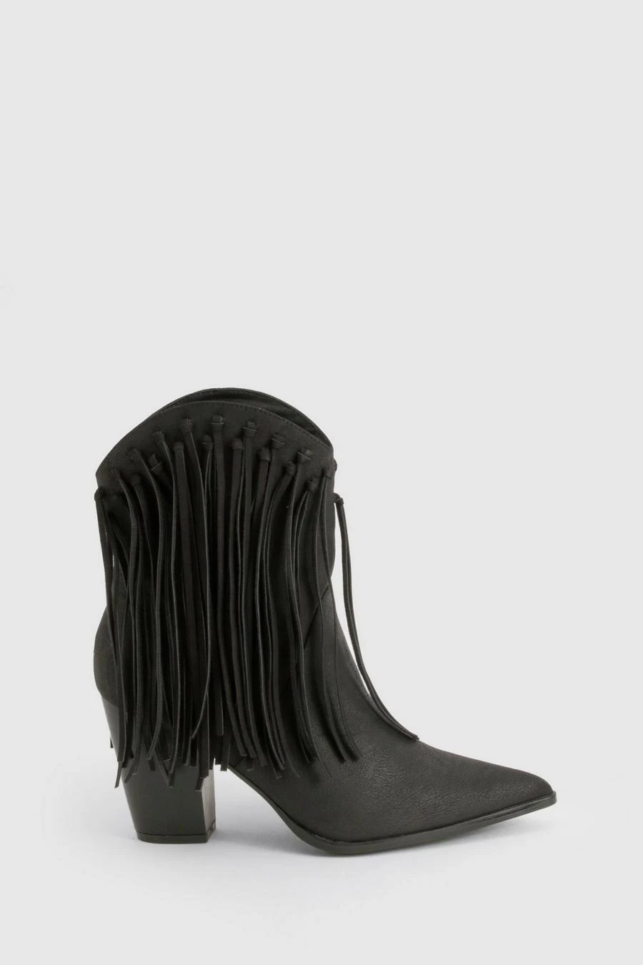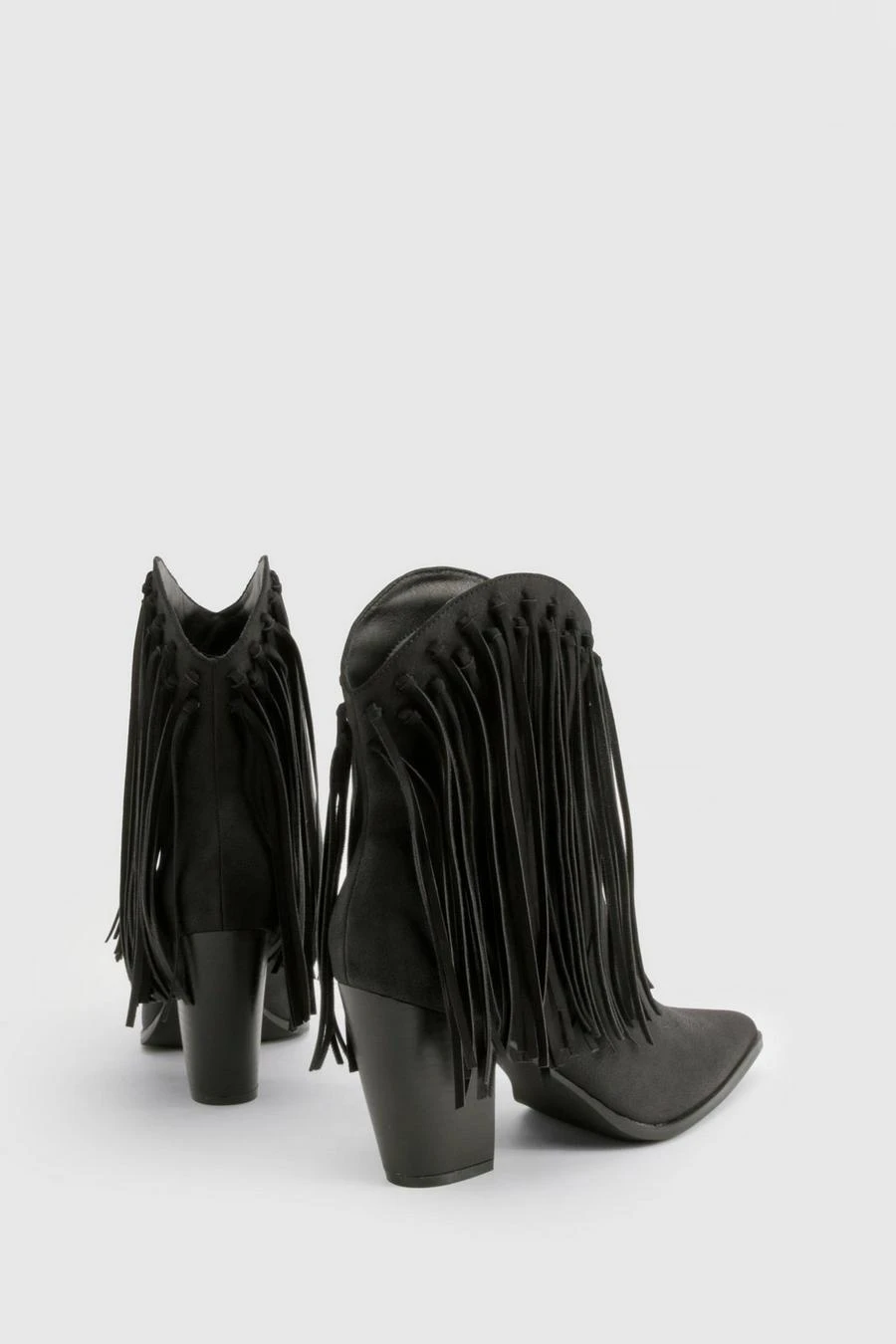 BOOHOO Nubuck Tassel Detail Heeled Western Ankle Boot