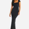 BOOHOO One Shoulder Scarf Detail Slinky Maxi Dress