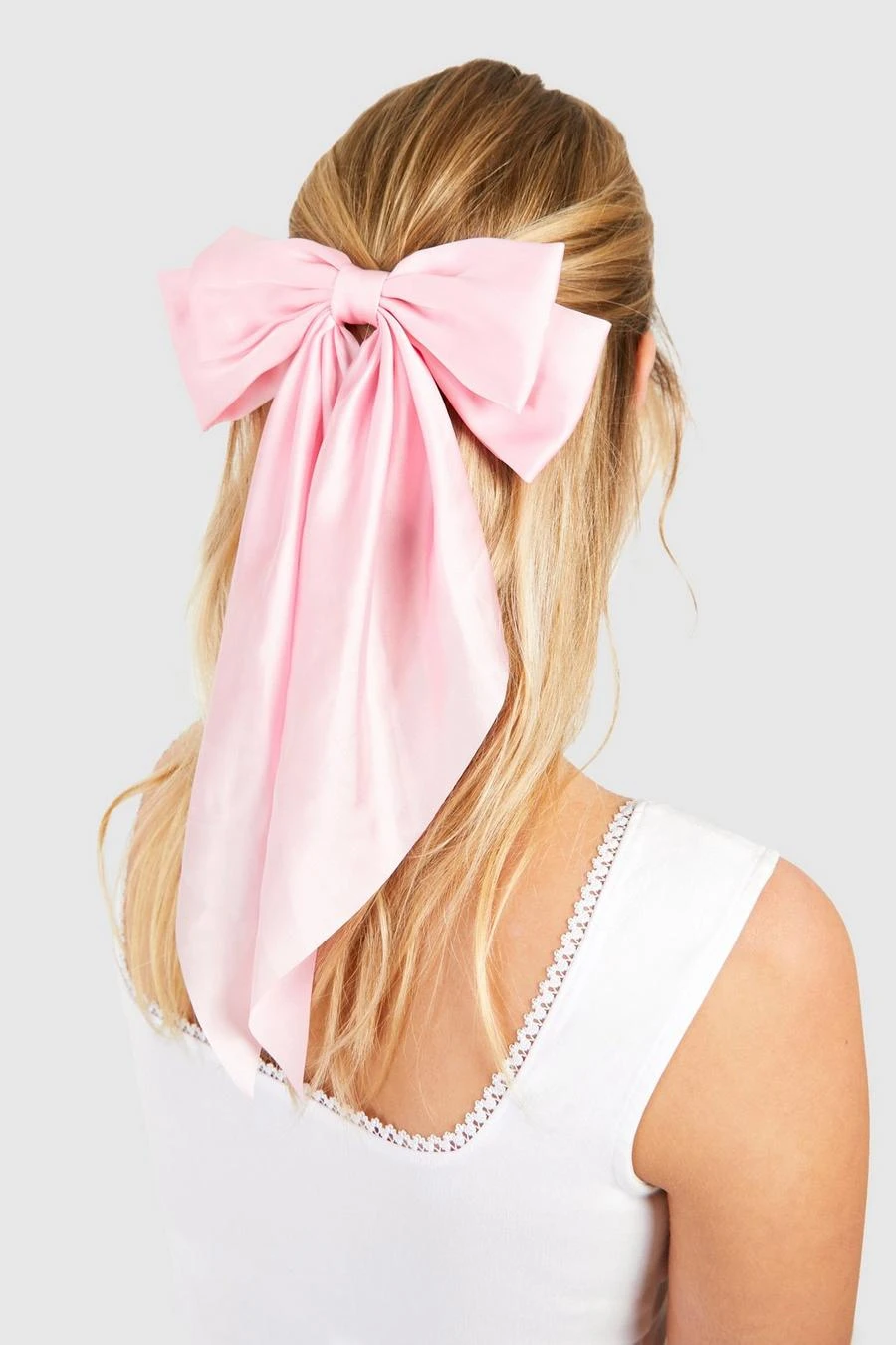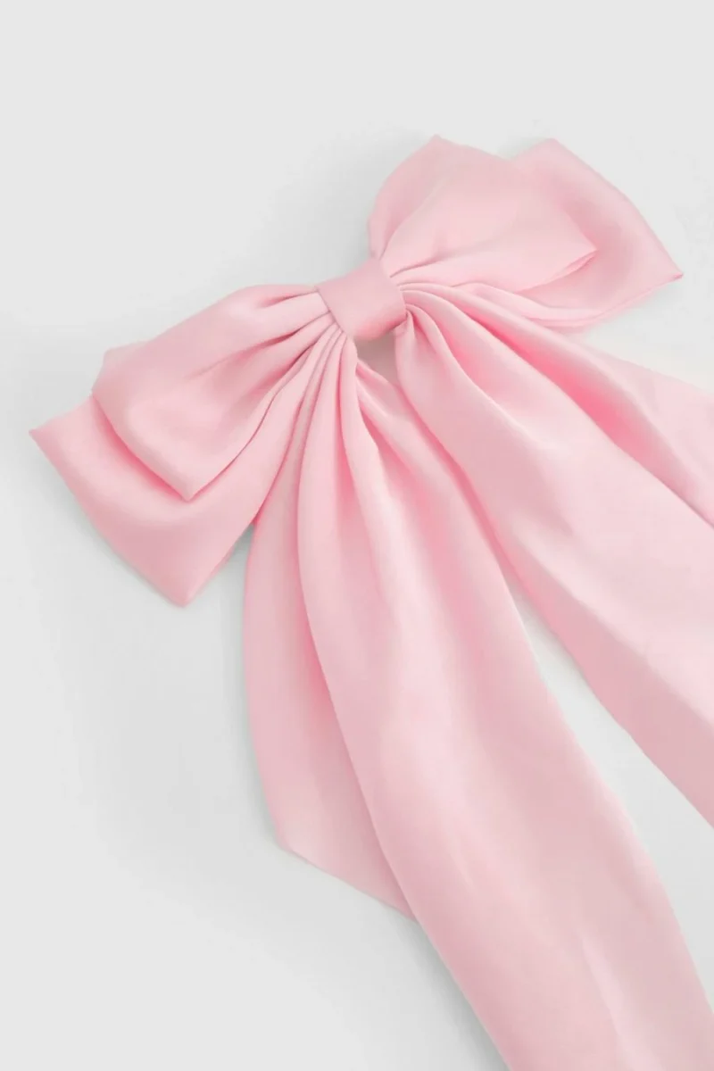 BOOHOO Oversized Baby Pink Satin Bow Hair Clip