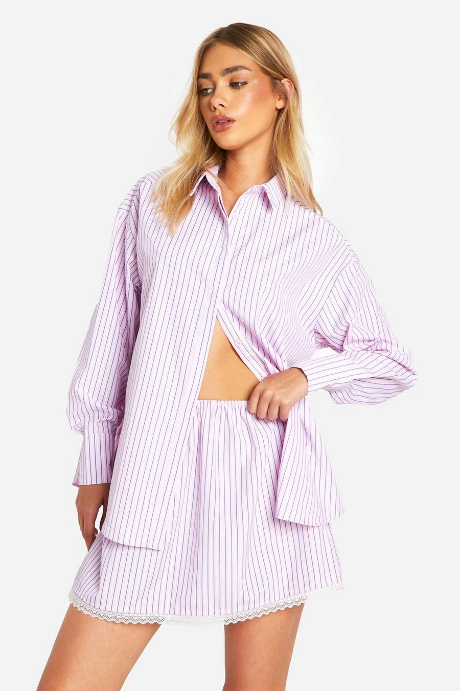 BOOHOO Oversized Fine Stripe Shirt