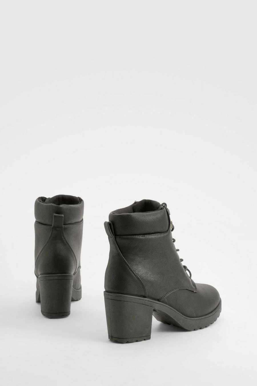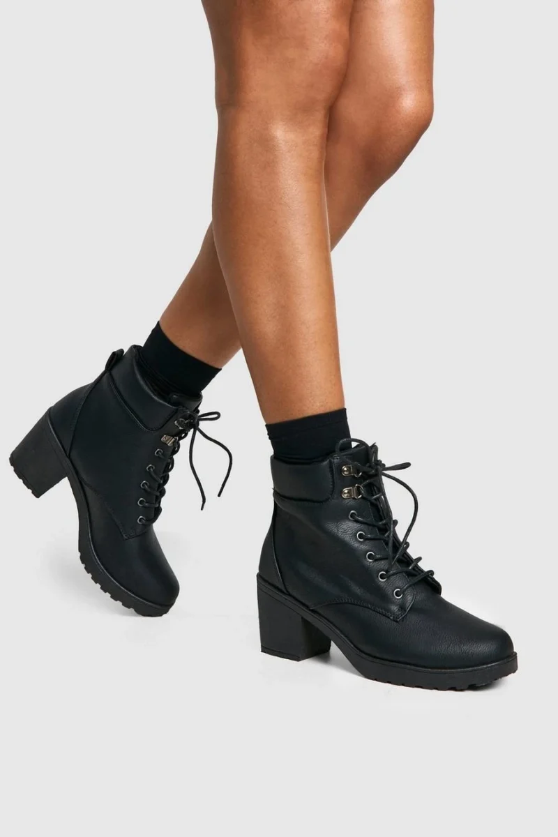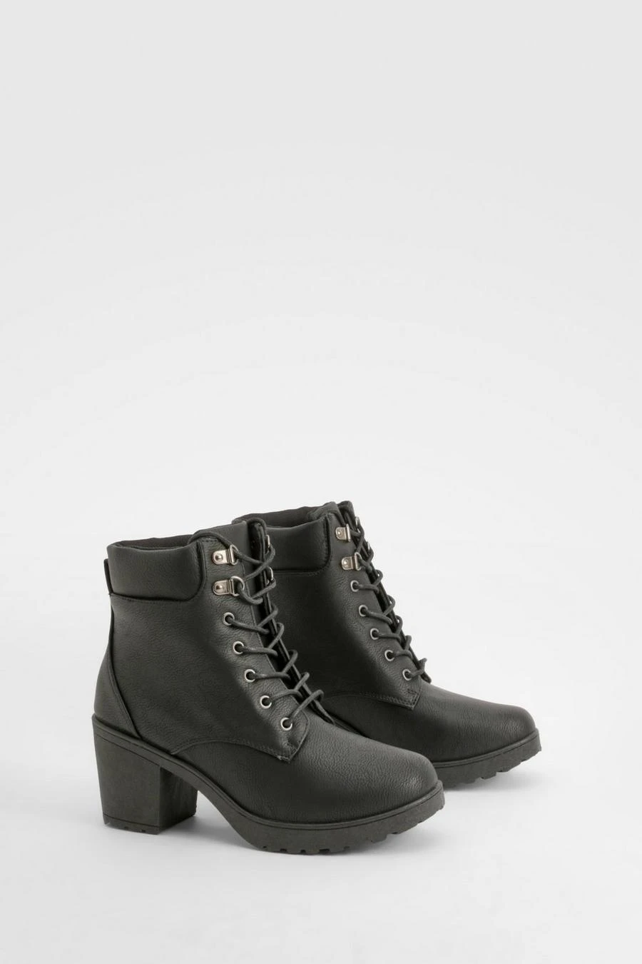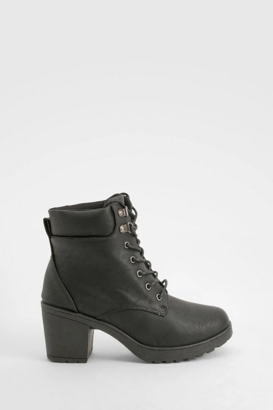 BOOHOO Padded Cuff Block Heel Hiker Boots