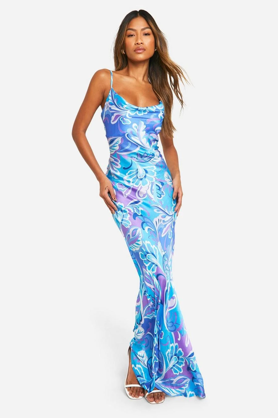 BOOHOO Paisley Strappy Cowl Neck Maxi Dress