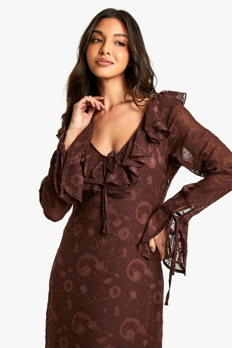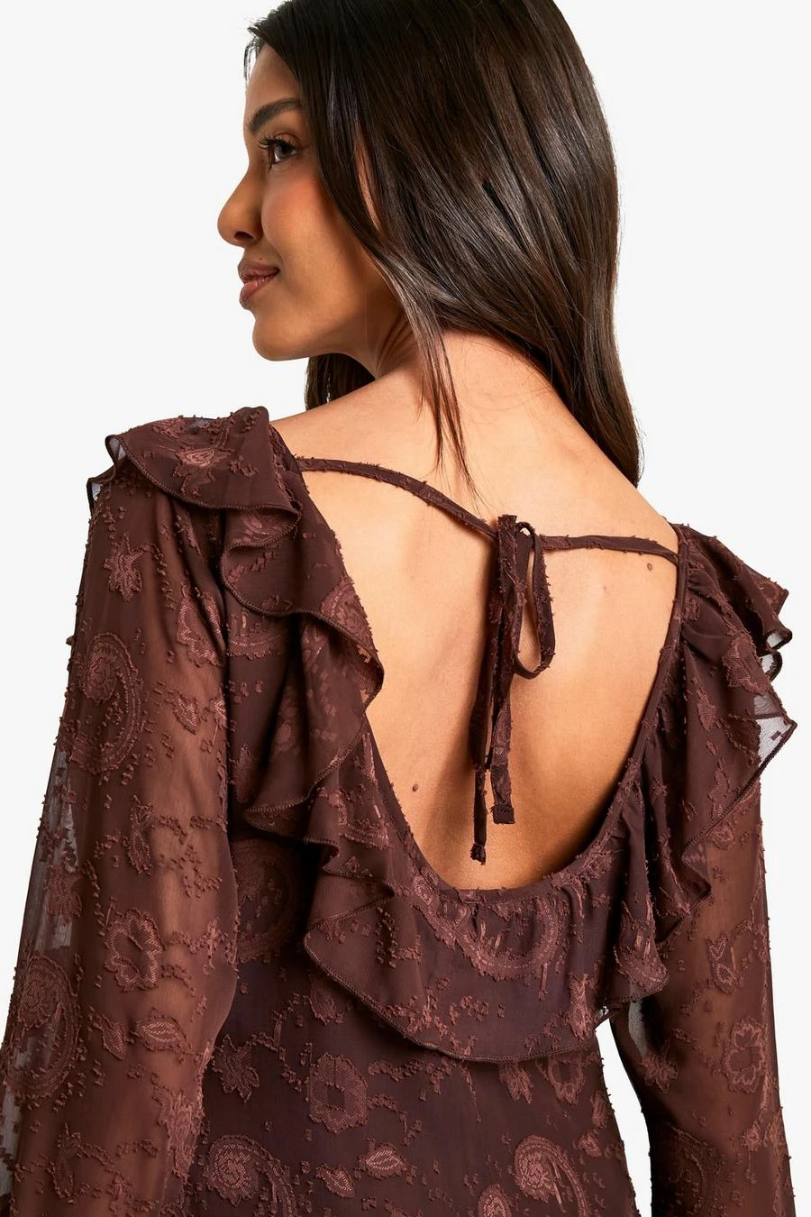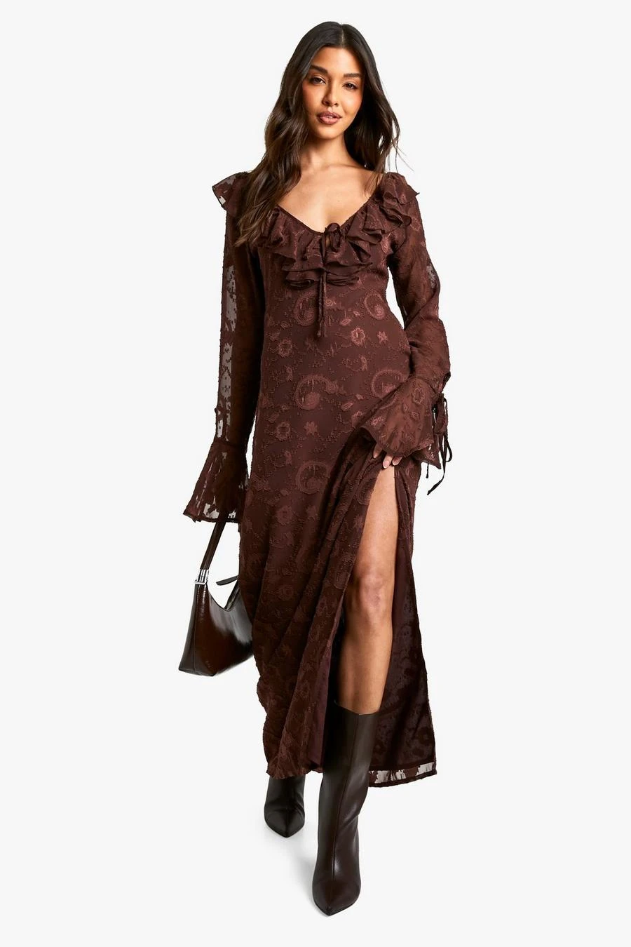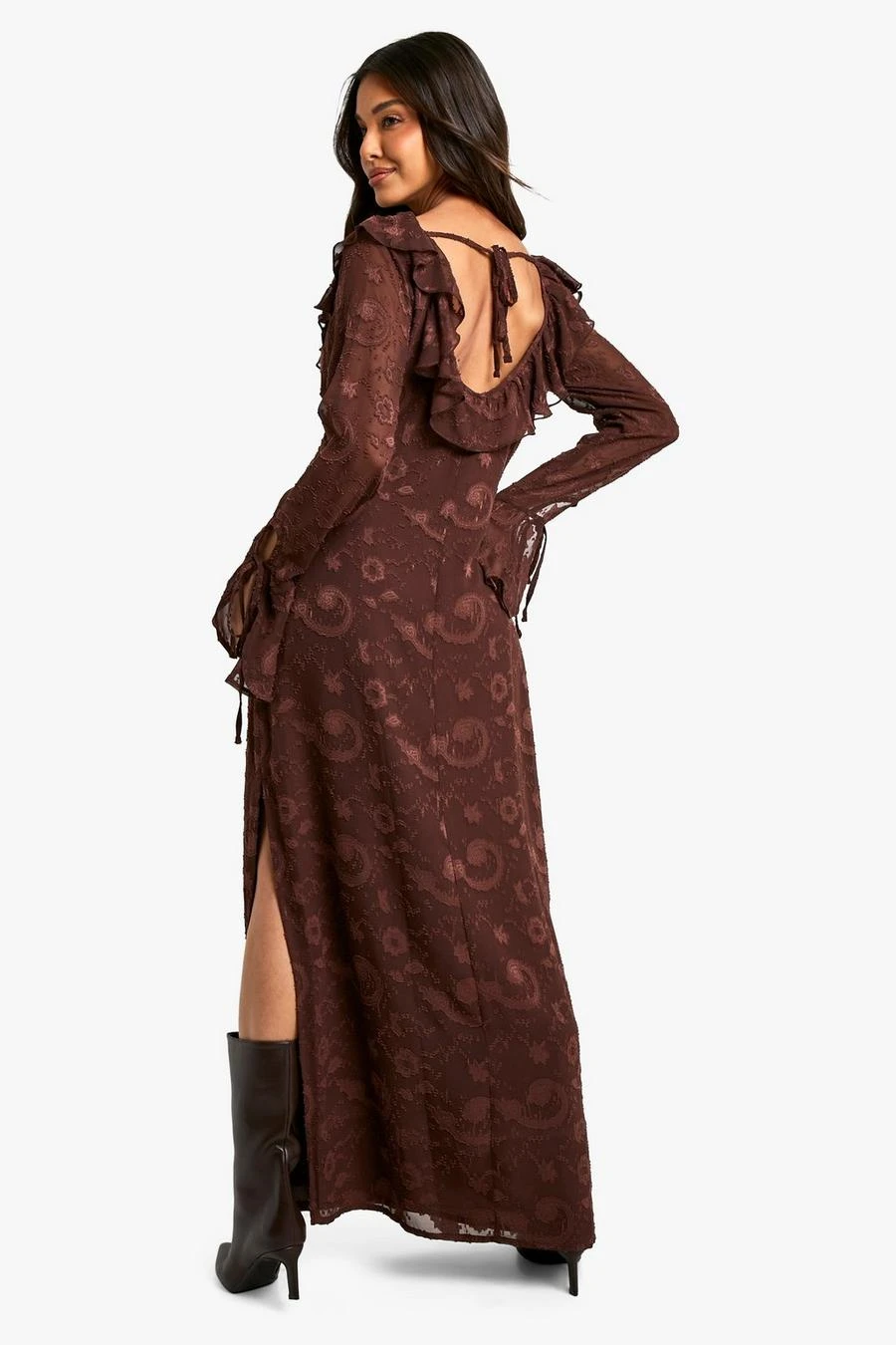 BOOHOO Paisley Textured Flare Sleeve Maxi Dress