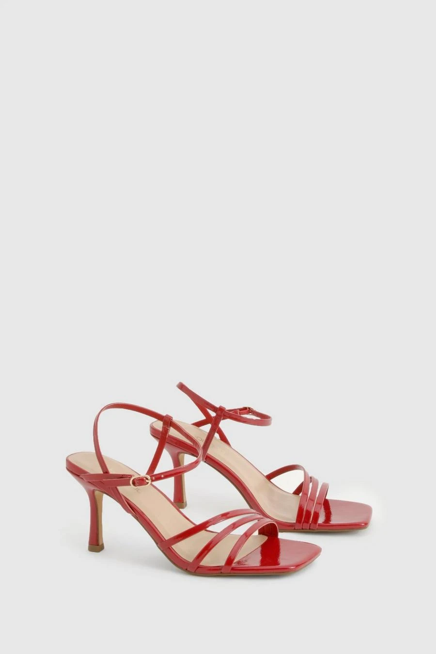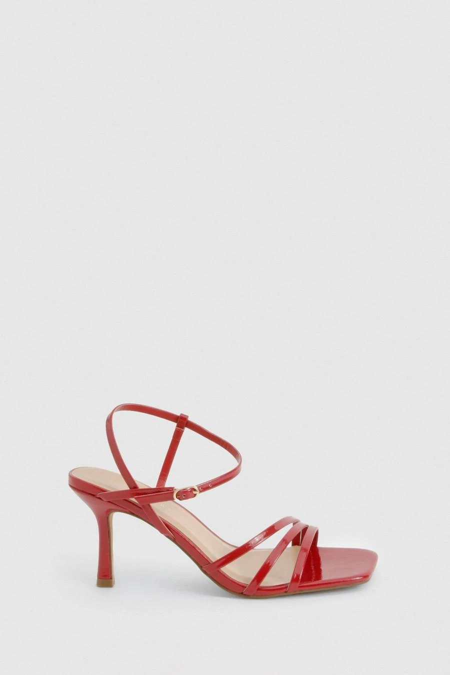BOOHOO Patent Asymmetric Strappy Square Toe Heels