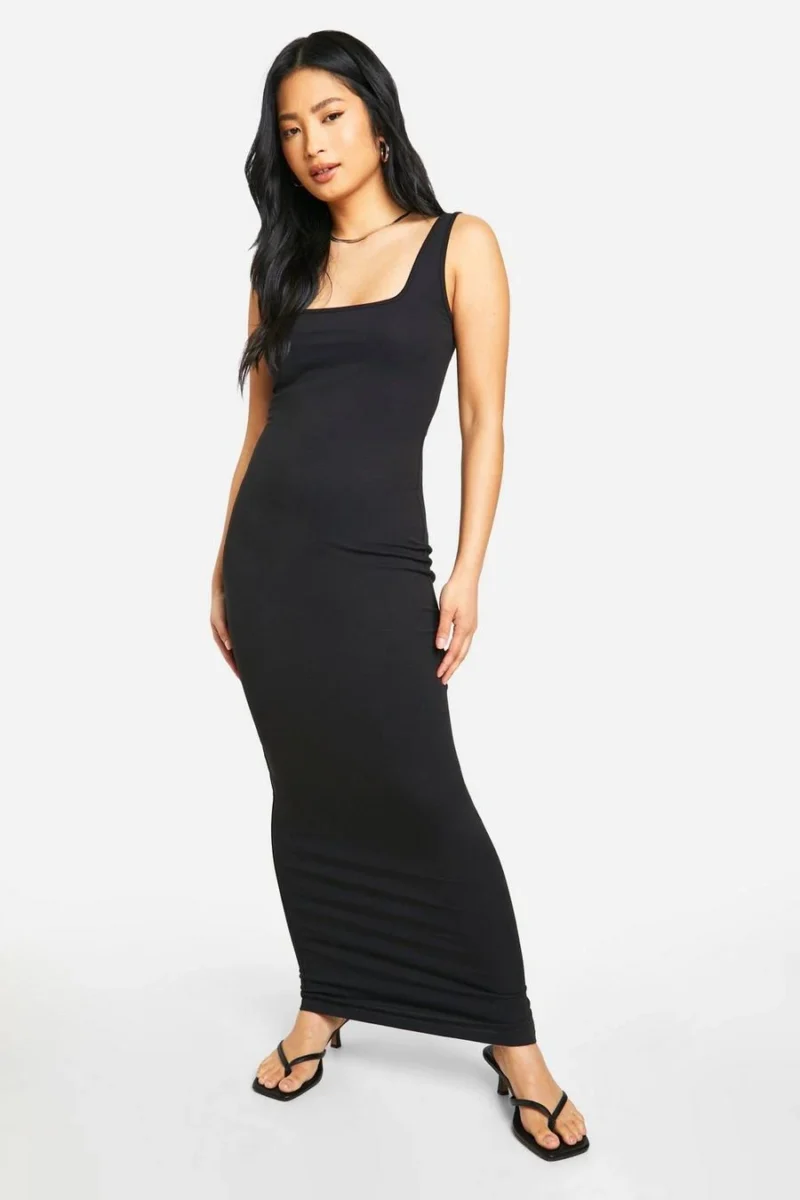 BOOHOO Petite Basic Cotton Square Neck Maxi Dress