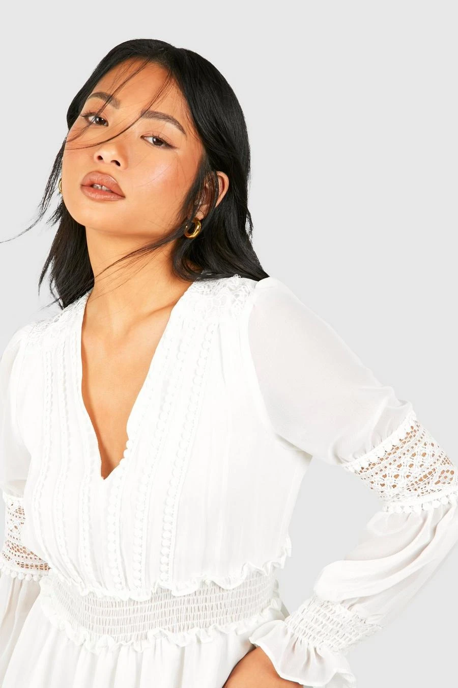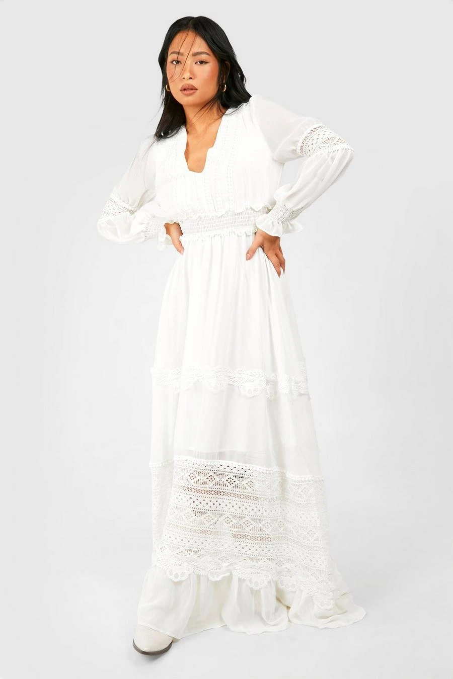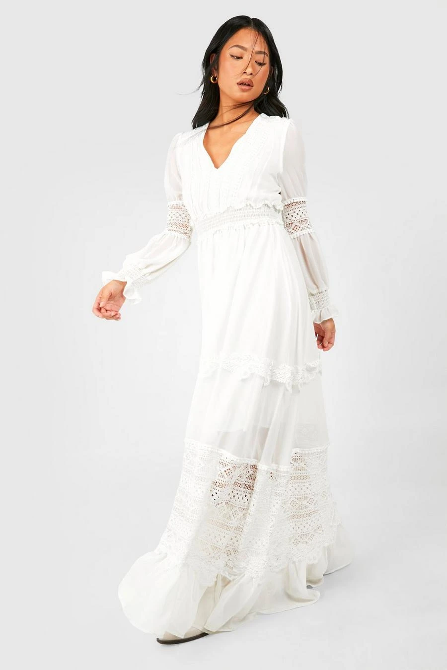 BOOHOO Petite Boho Lace Detail Tierred Maxi Dress