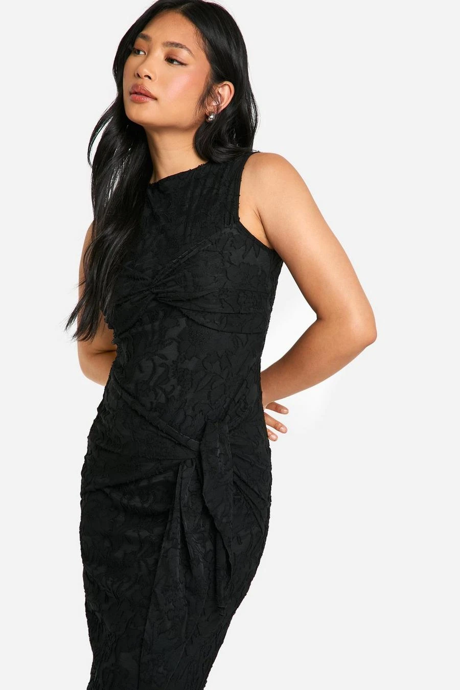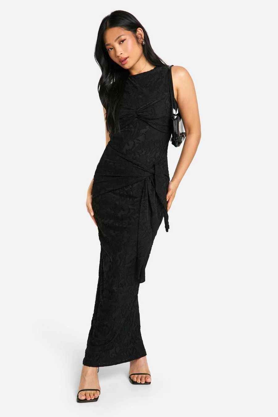 BOOHOO Petite Burnout Floral Tie Twist Maxi Dress