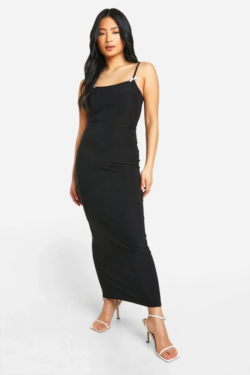 BOOHOO Petite Contrast Bow Detail Maxi Dress