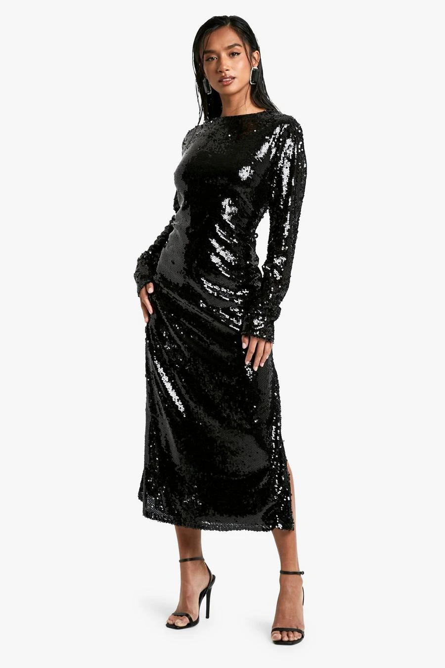 BOOHOO Petite Crew Neck Sequin Maxi Dress