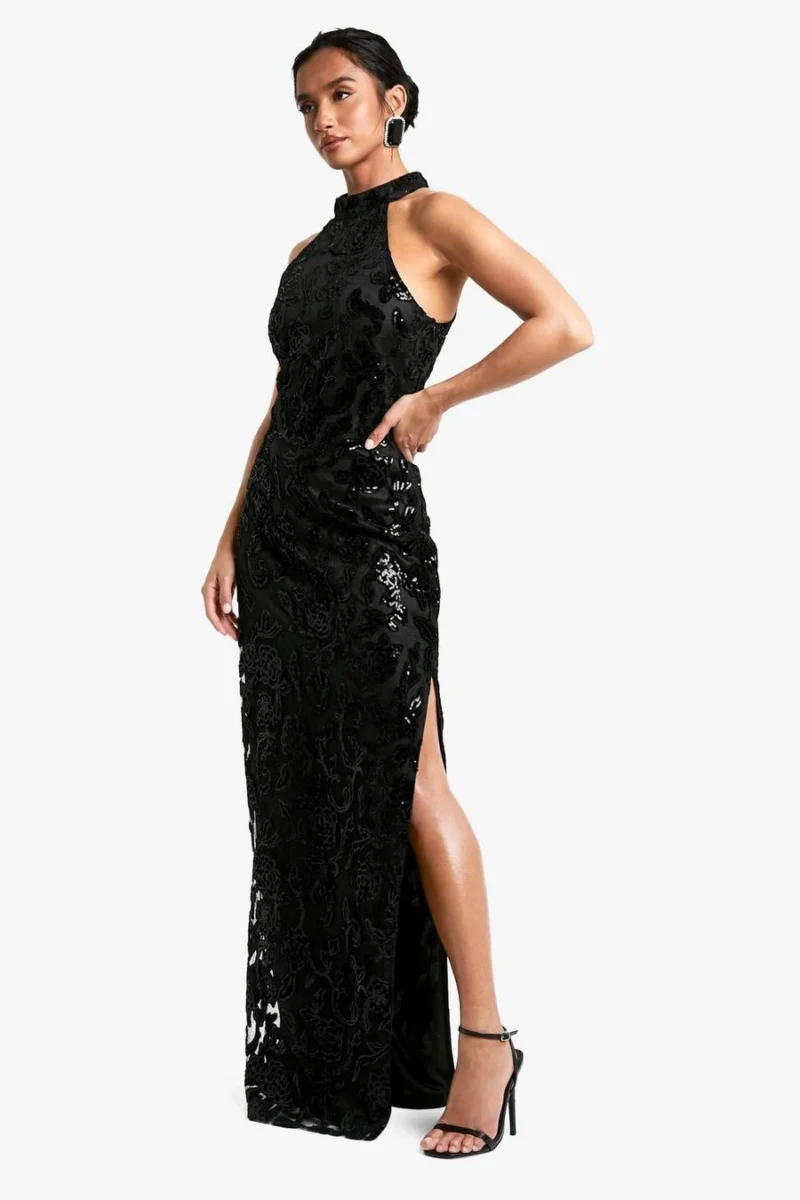 BOOHOO Petite Damask High Neck Maxi Dress