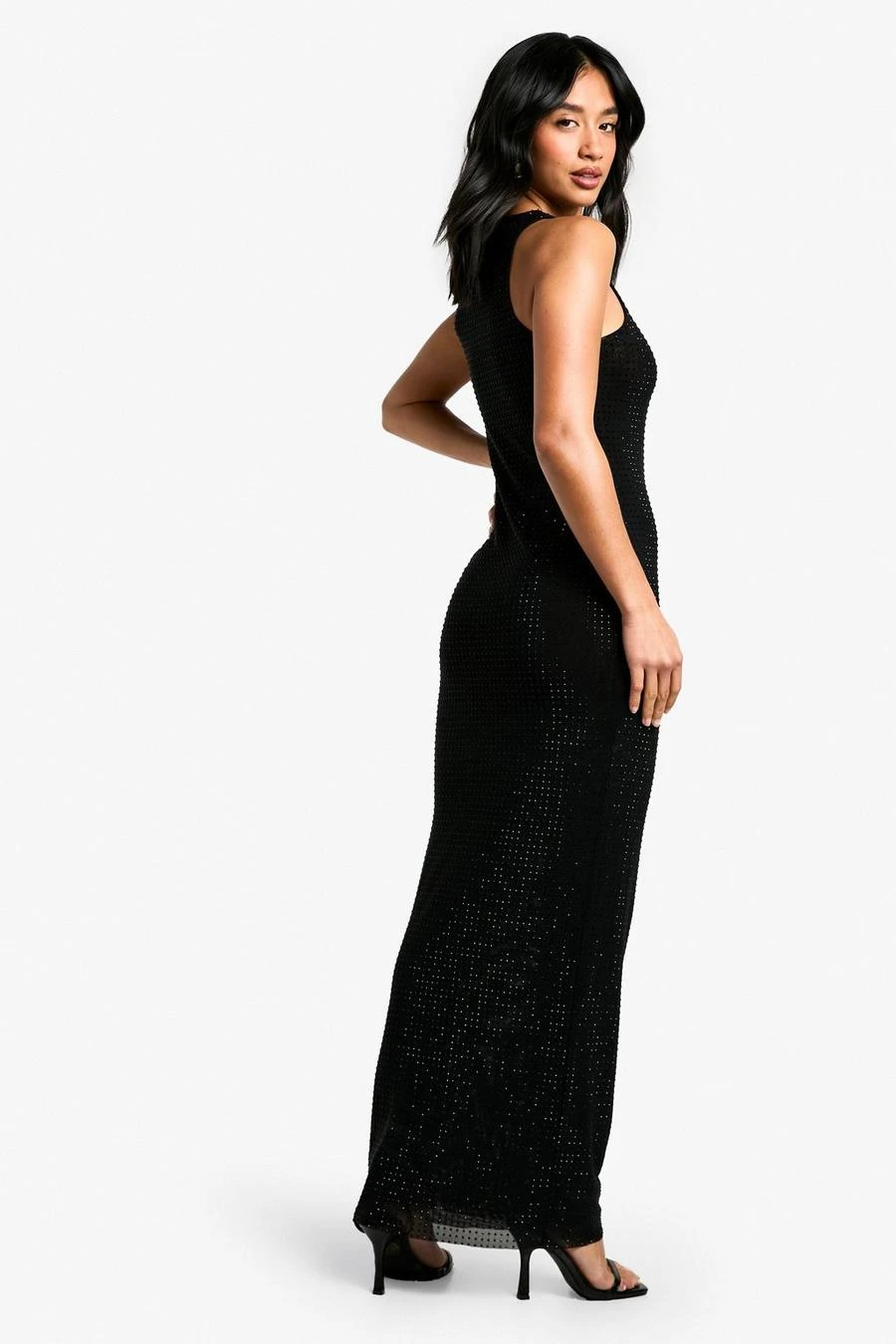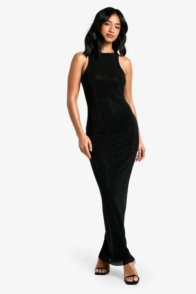 BOOHOO Petite Hotfix Diamante Racer Neck Maxi Dress