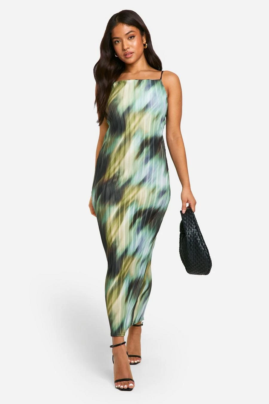 BOOHOO Petite Plisse Abstract Maxi Dress