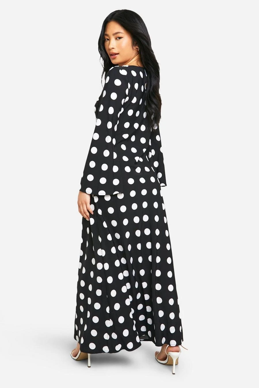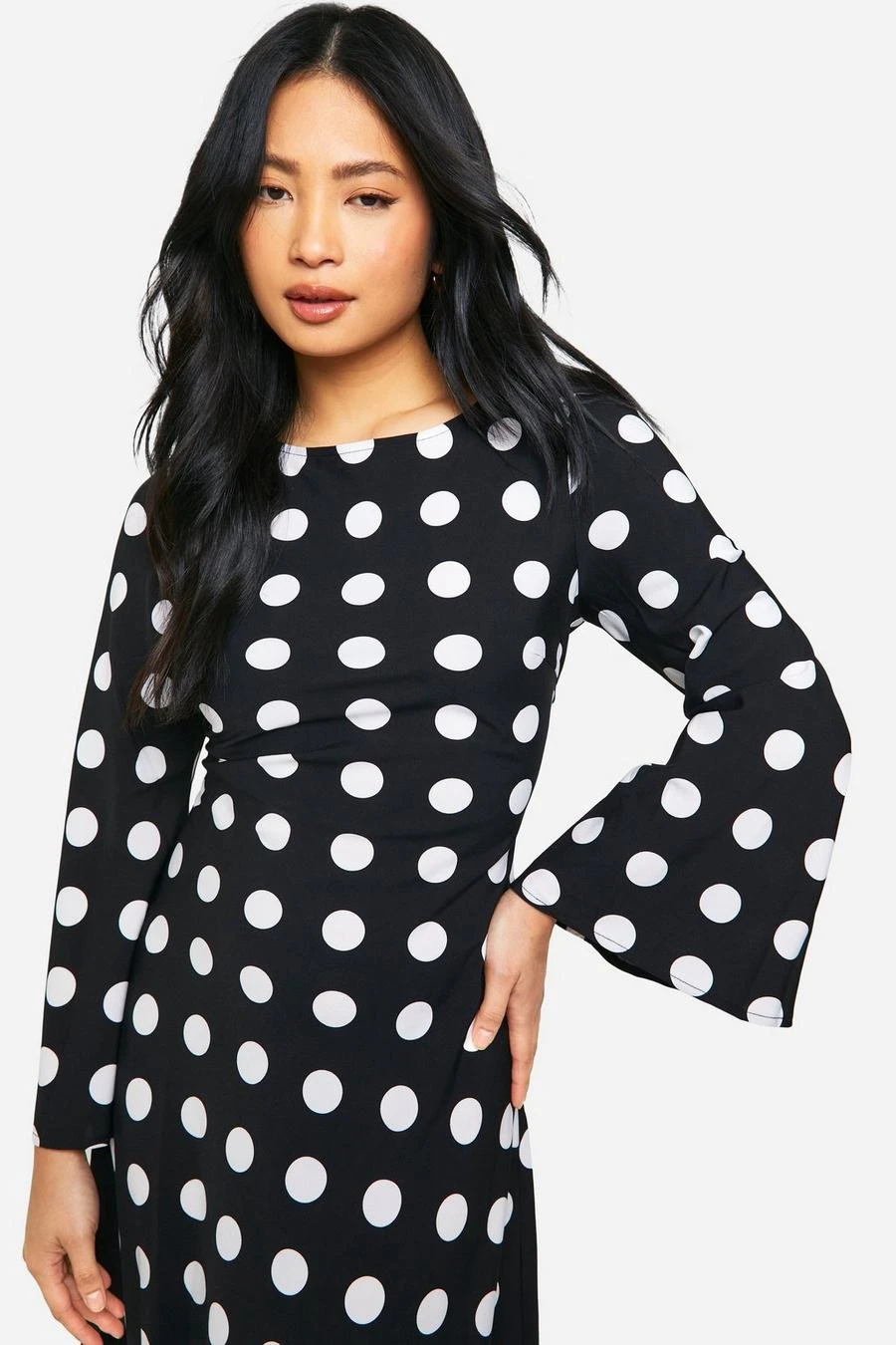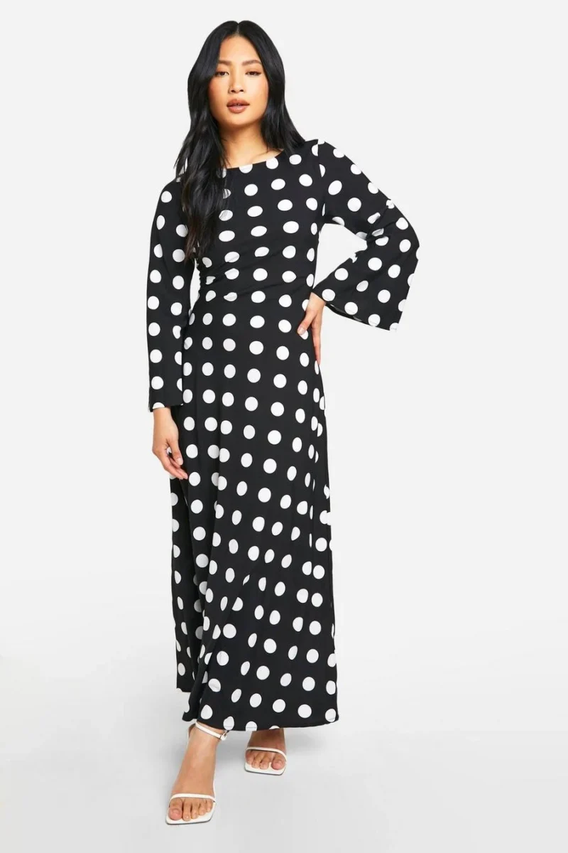 BOOHOO Petite Polkadot Print Flare Sleeve Maxi Dress