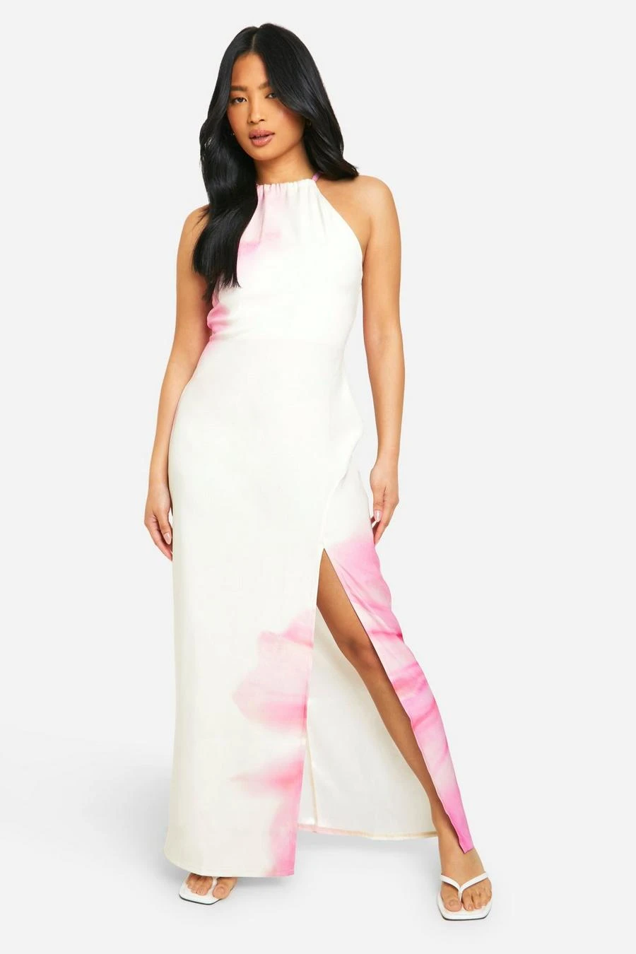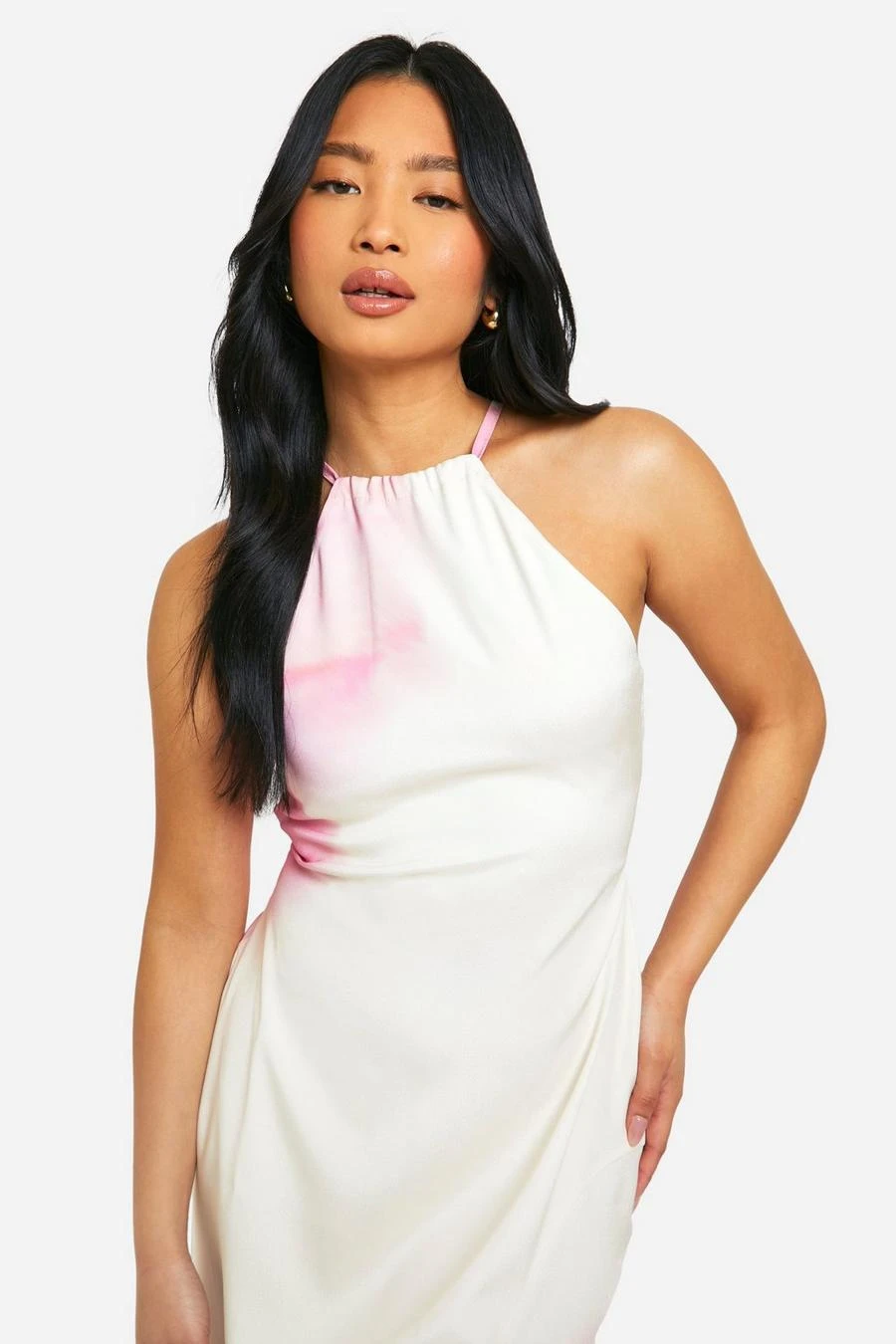 BOOHOO Petite Printed Back Detail Satin Maxi Dress