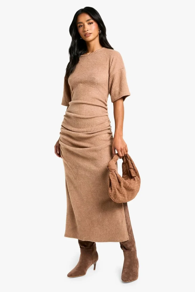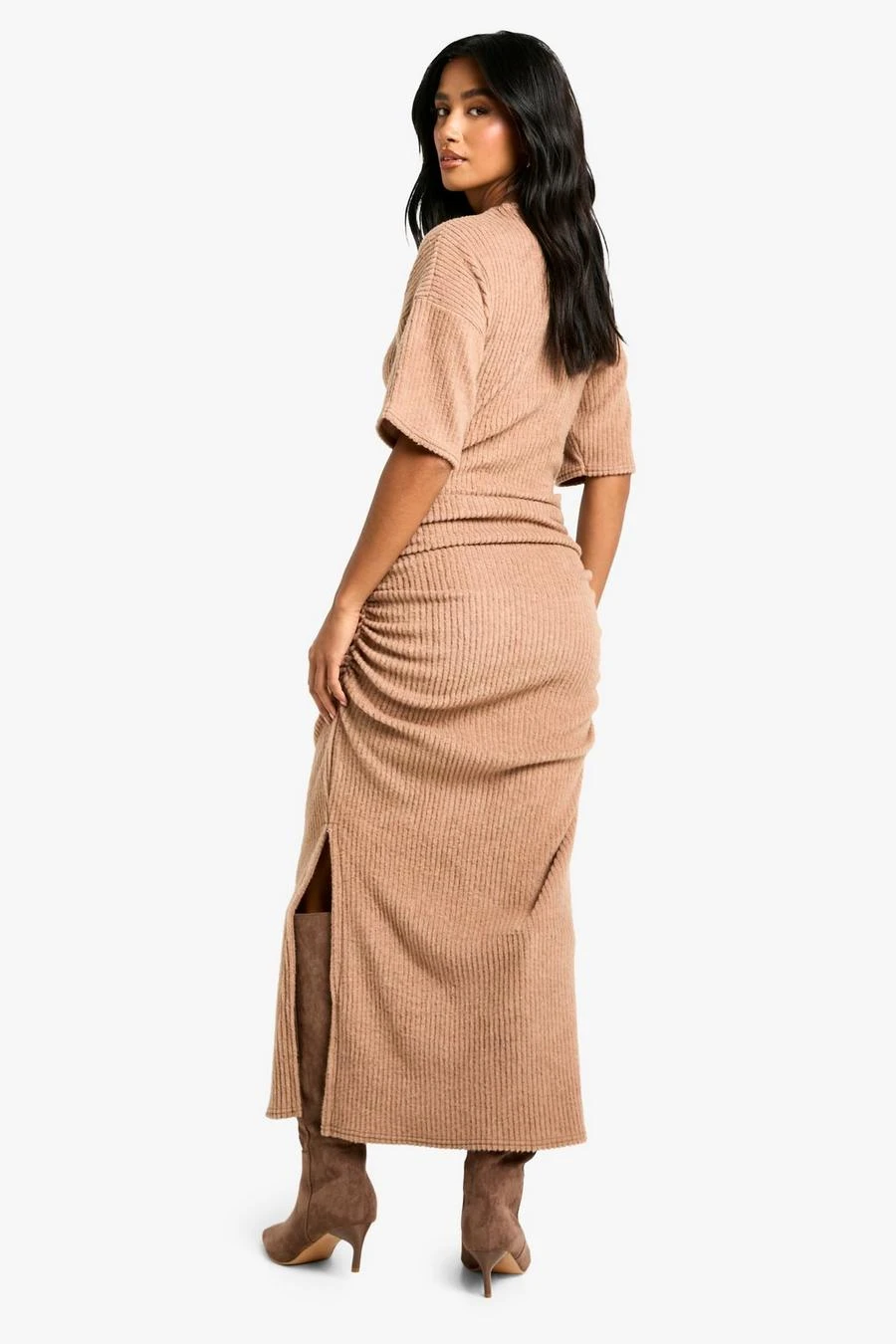 BOOHOO Petite Ruched Soft Rib Maxi Dress