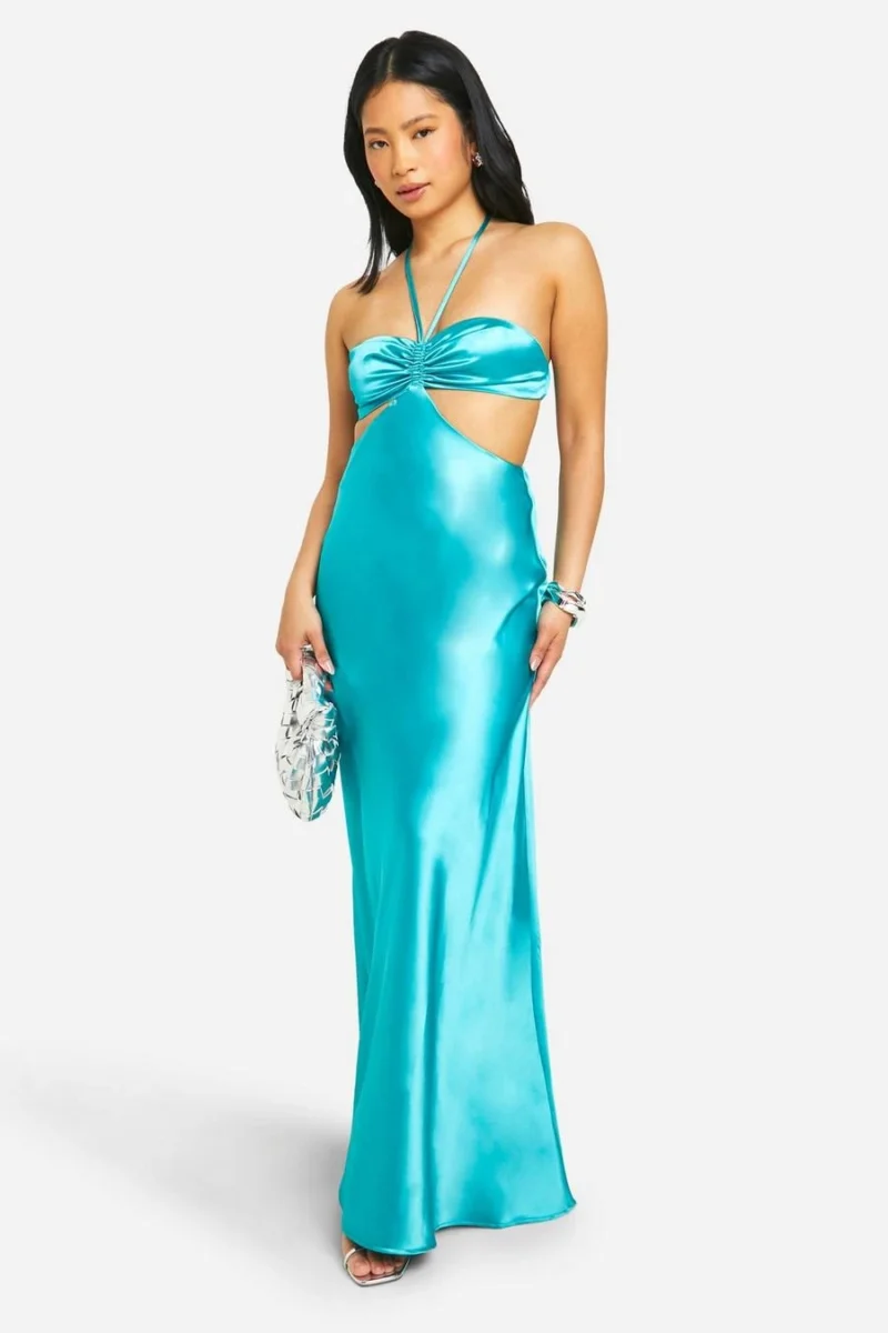 BOOHOO Petite Satin Bandeau Cut Out Maxi Dress