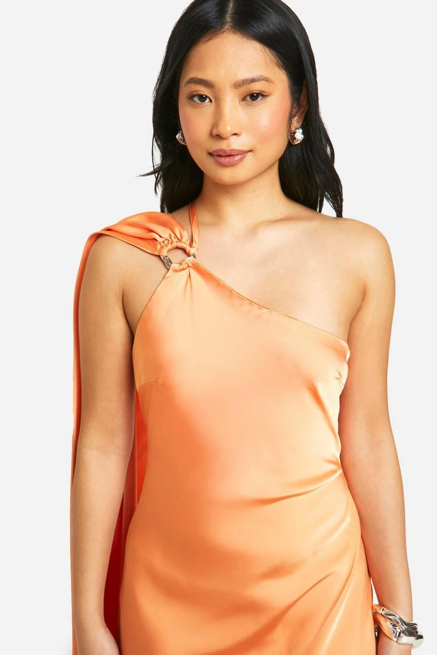 BOOHOO Petite Satin Draped Shoulder Maxi Dress