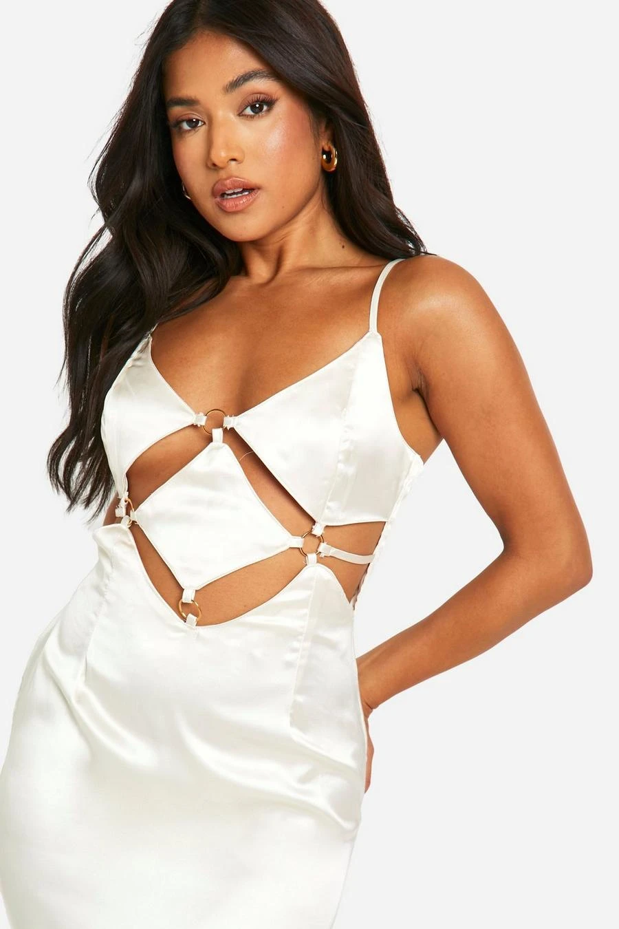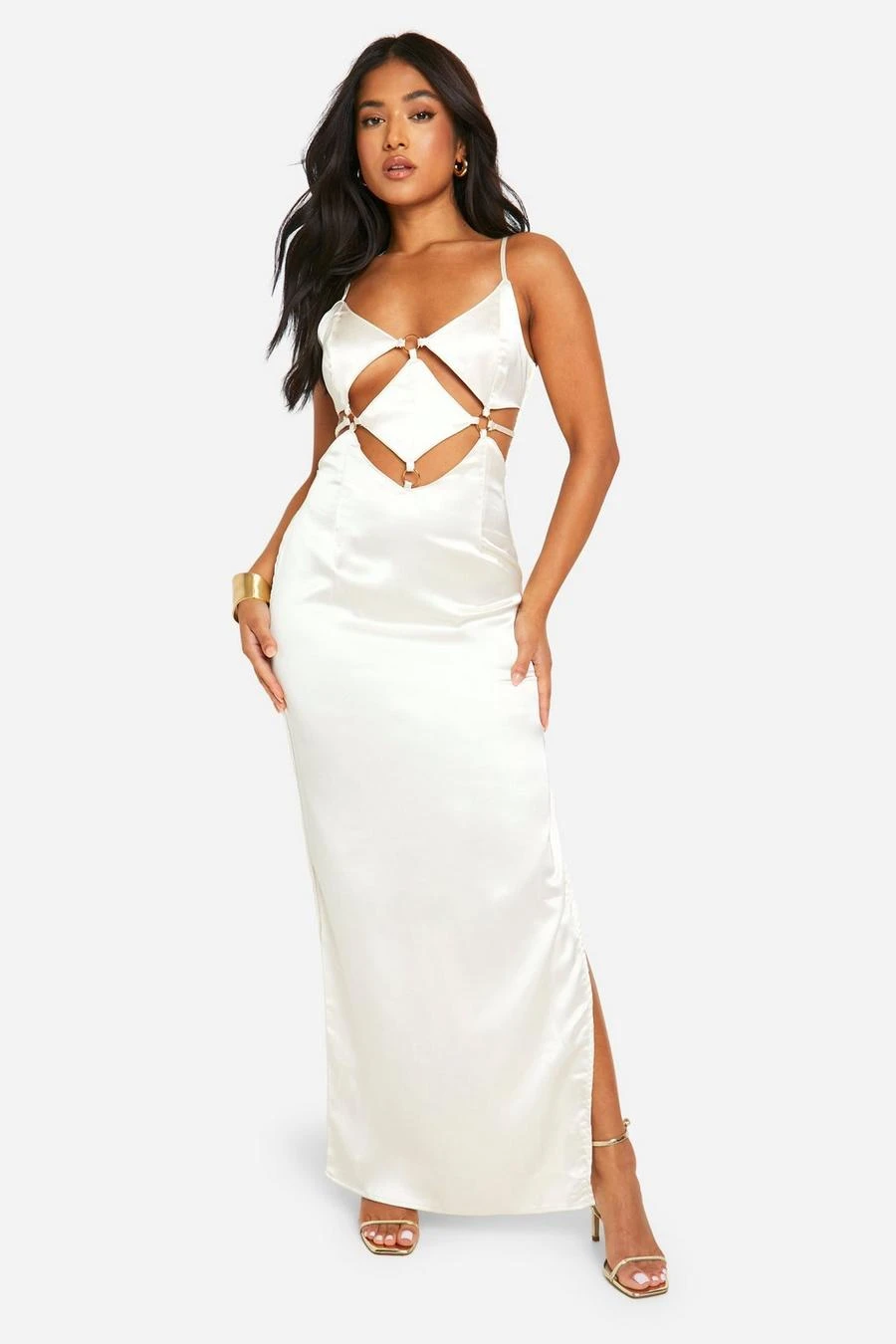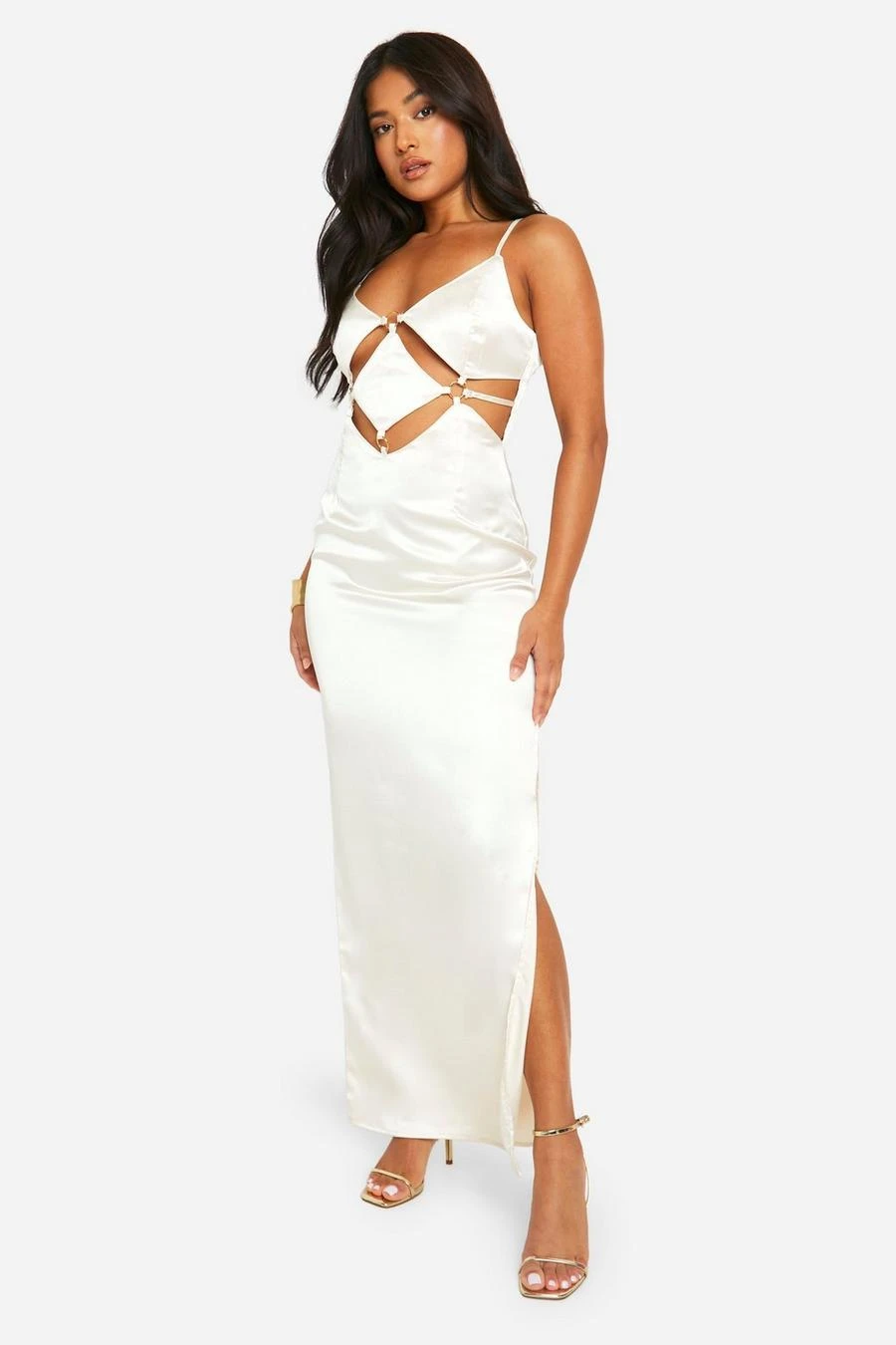 BOOHOO Petite Satin Strappy Cut Out Maxi Slip Dress