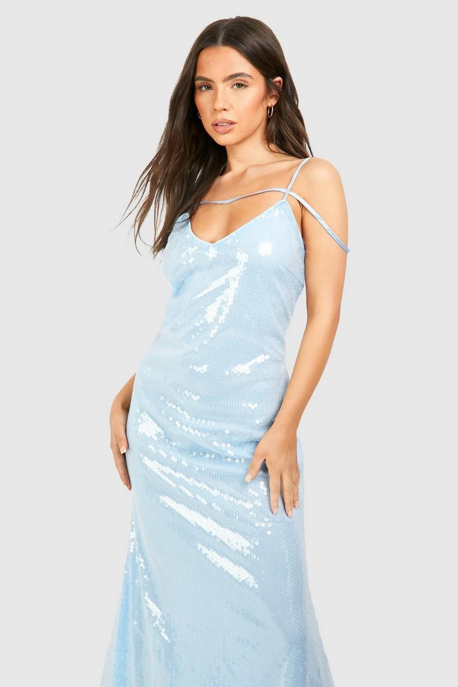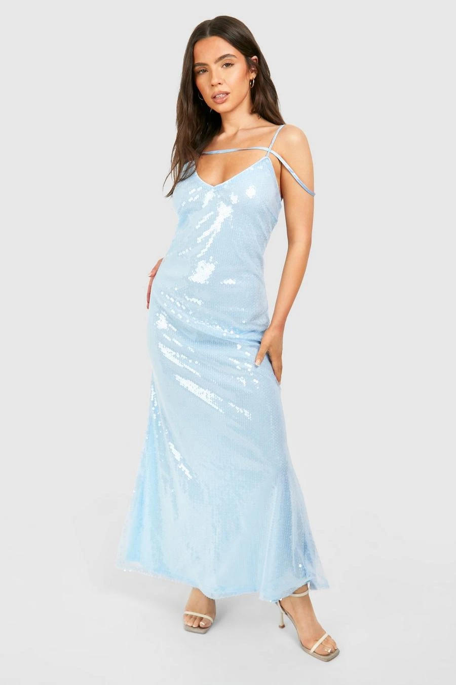 BOOHOO Petite Strap Detail Sequin Maxi Dress