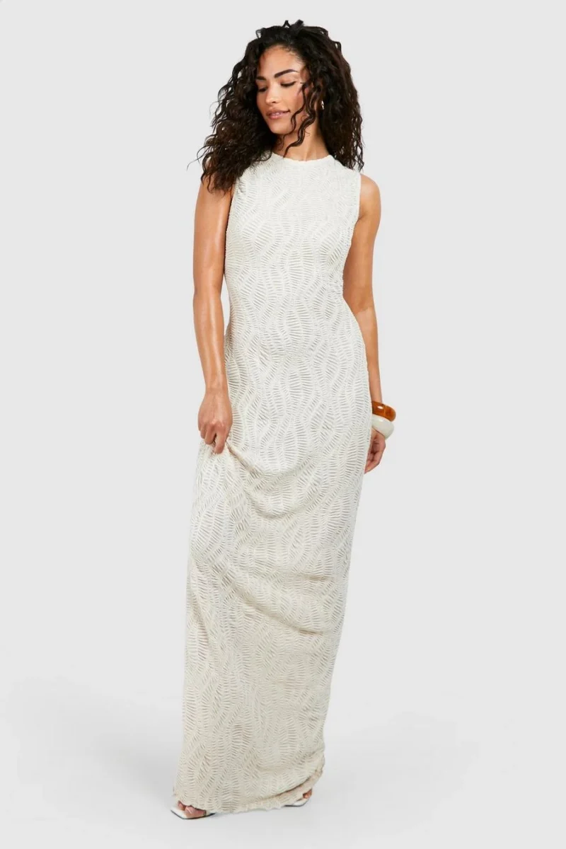 BOOHOO Petite Textured Sleeveless Maxi Dress
