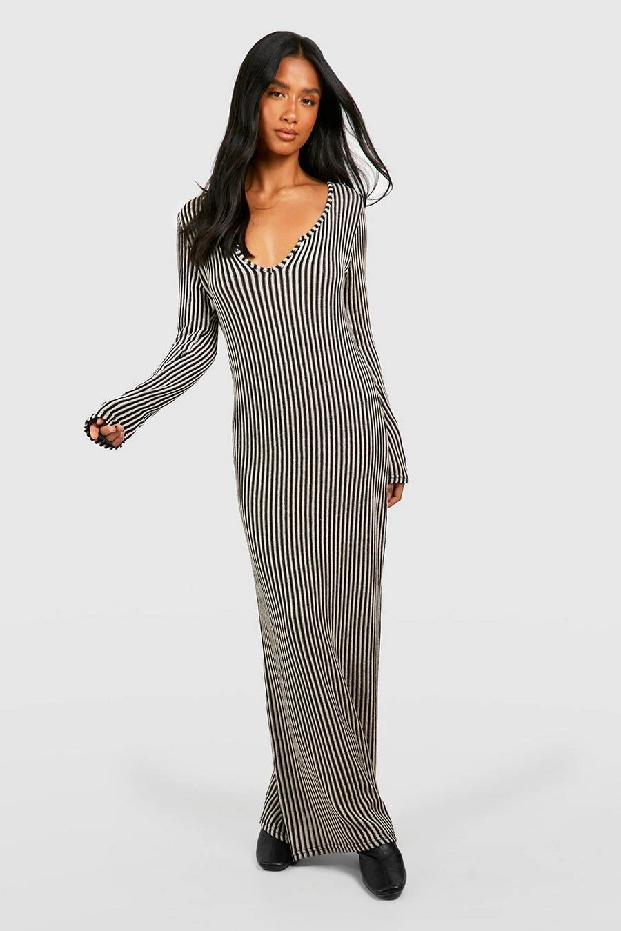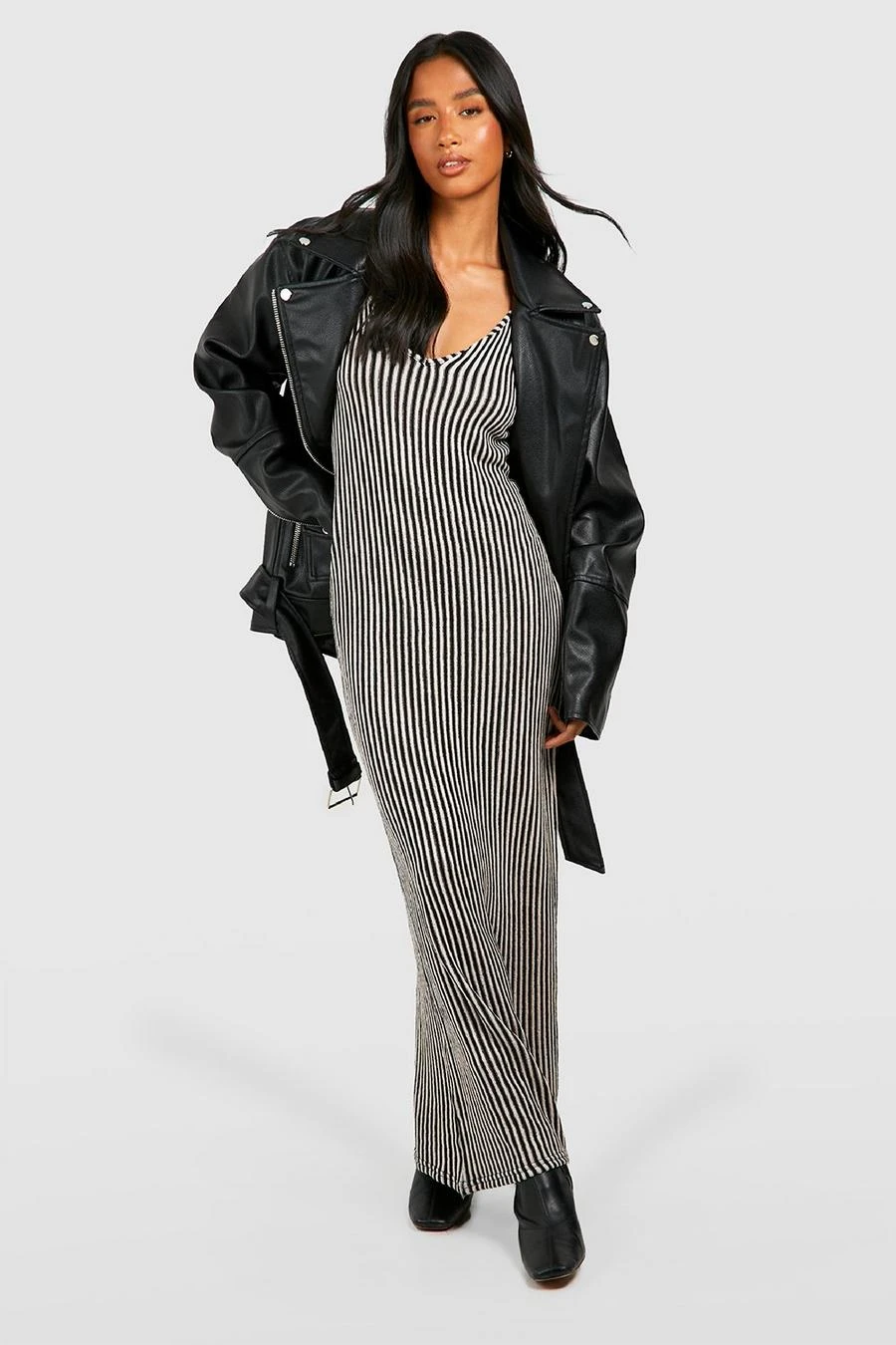 BOOHOO Petite Tonal Rib Notch Neck Column Maxi Dress