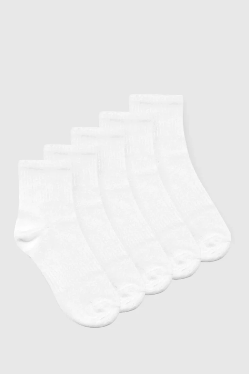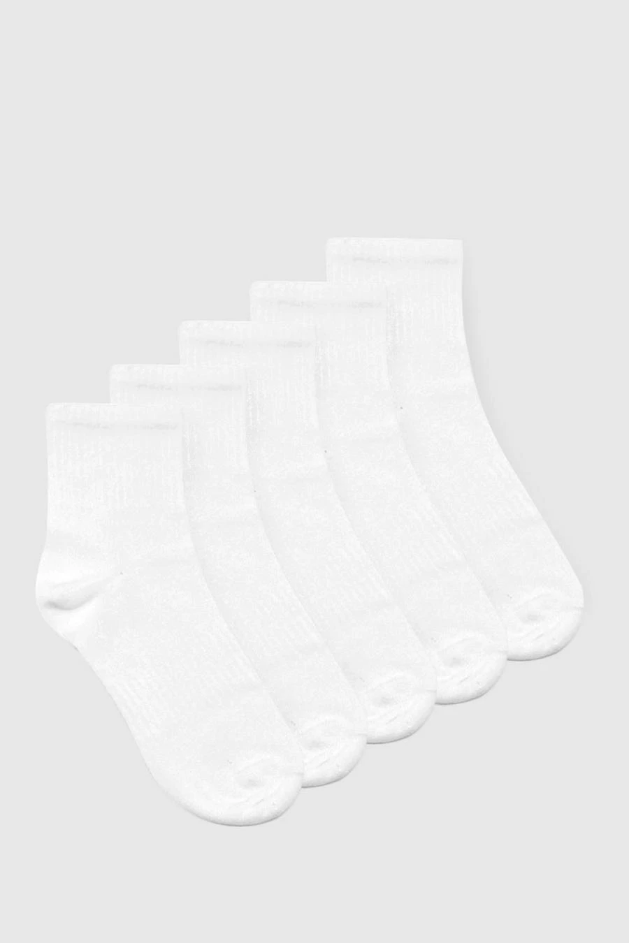 BOOHOO Plain White 5 Pack Ankle Sport Socks