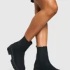BOOHOO Platform Wooden Heel Detail Ankle Boot
