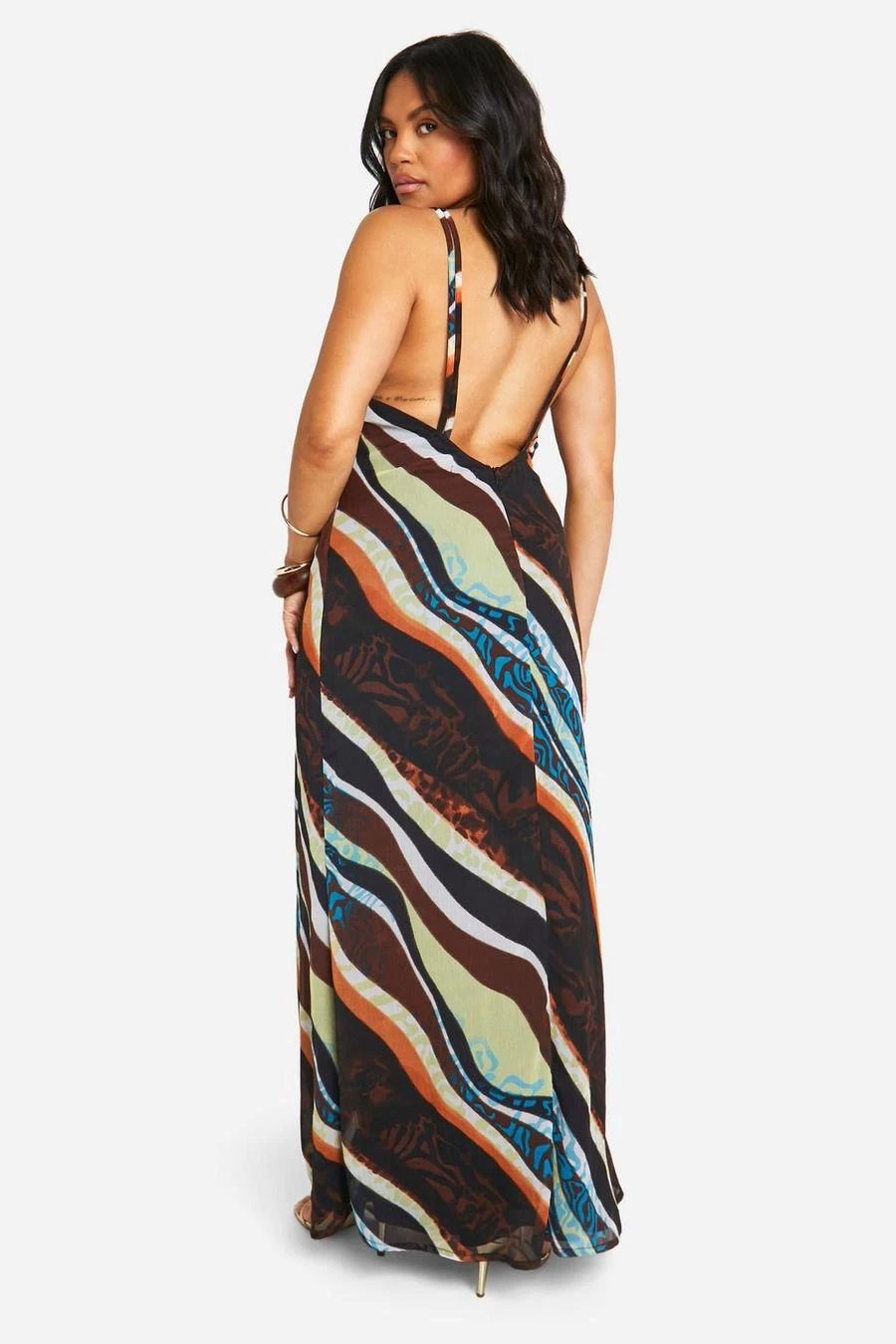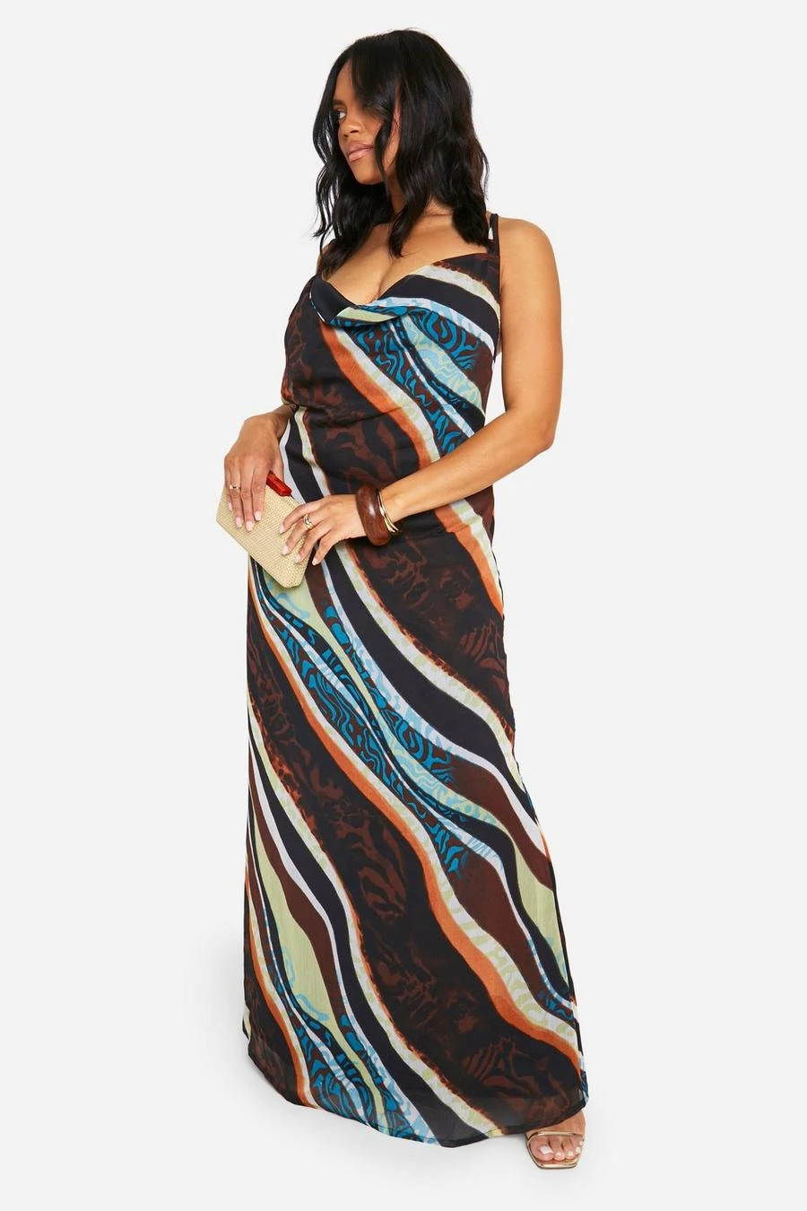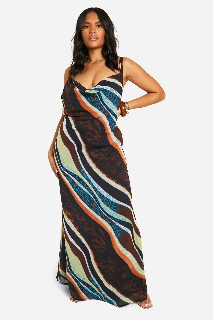 BOOHOO Plus Abstract Chiffon Cowl Maxi Dress