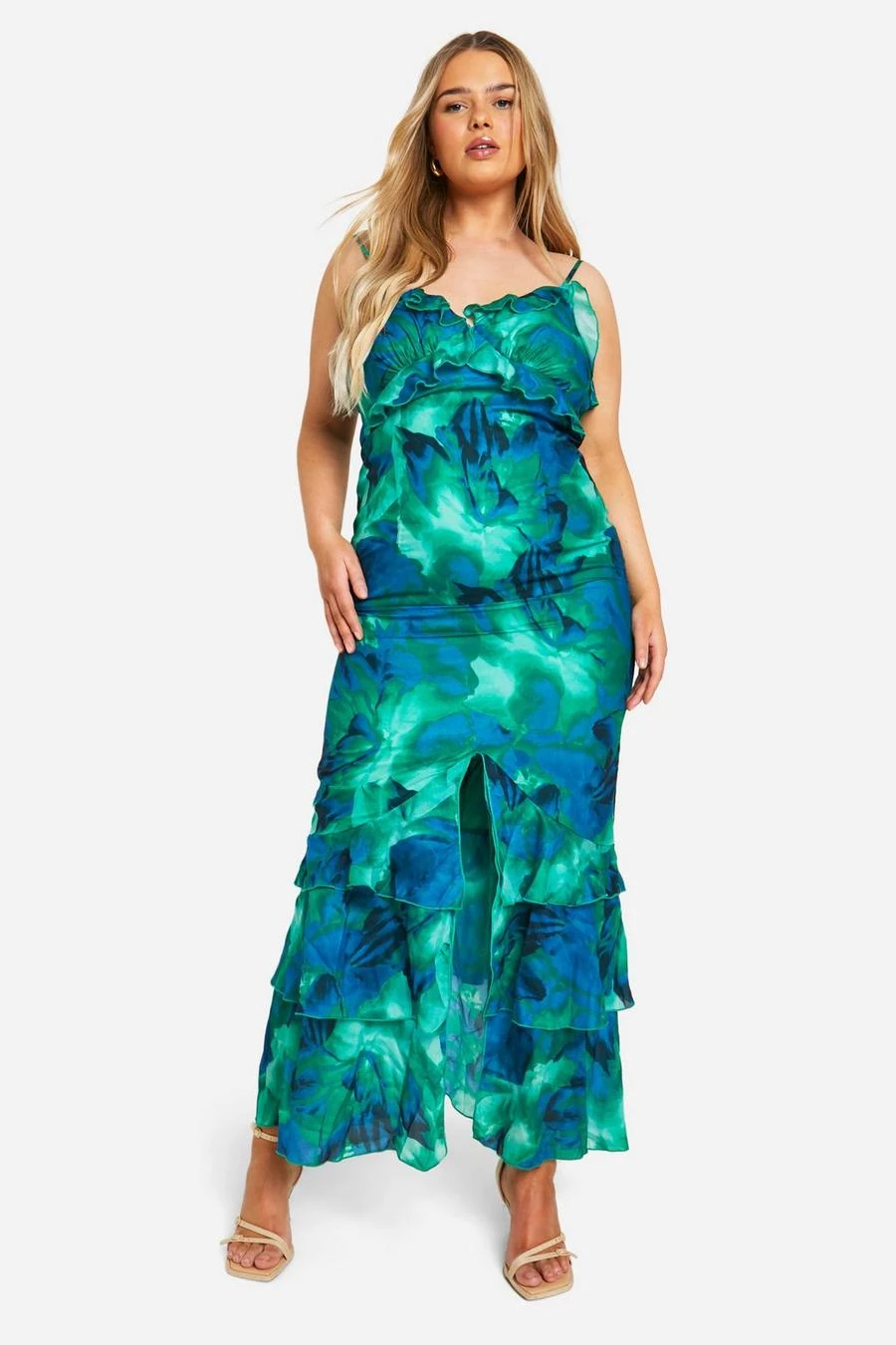 BOOHOO Plus Abstract Floral Ruffle Maxi Dress