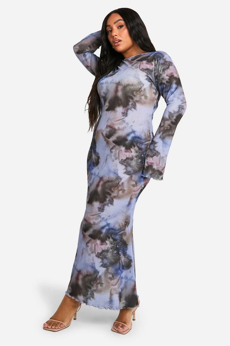BOOHOO Plus Abstract Print Column Maxi Dress