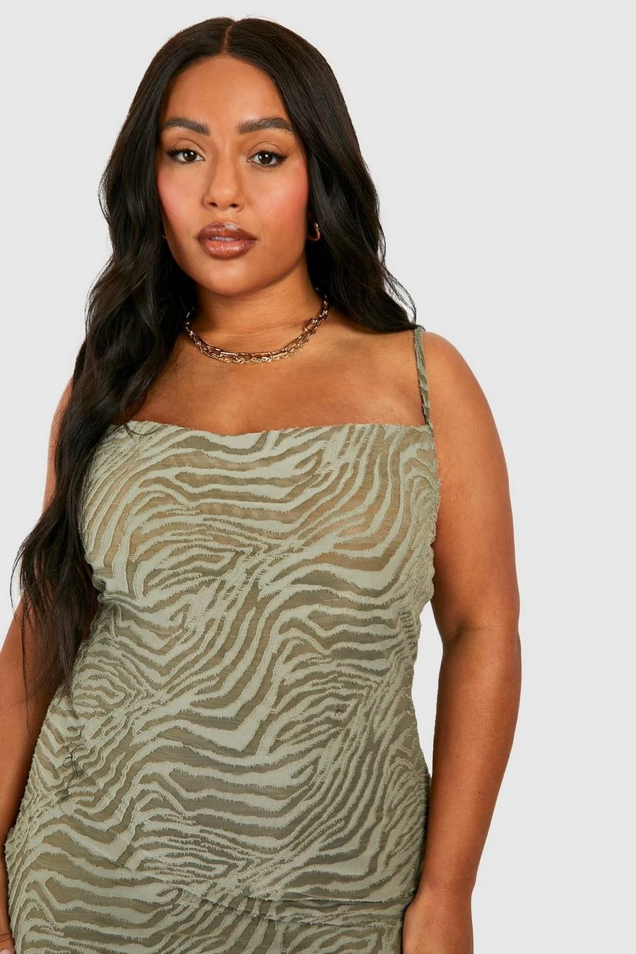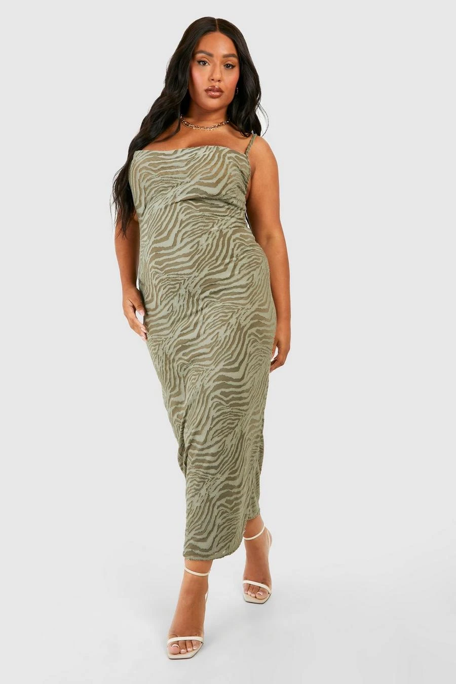 BOOHOO Plus Animal Devore Cowl Neck Maxi Dress