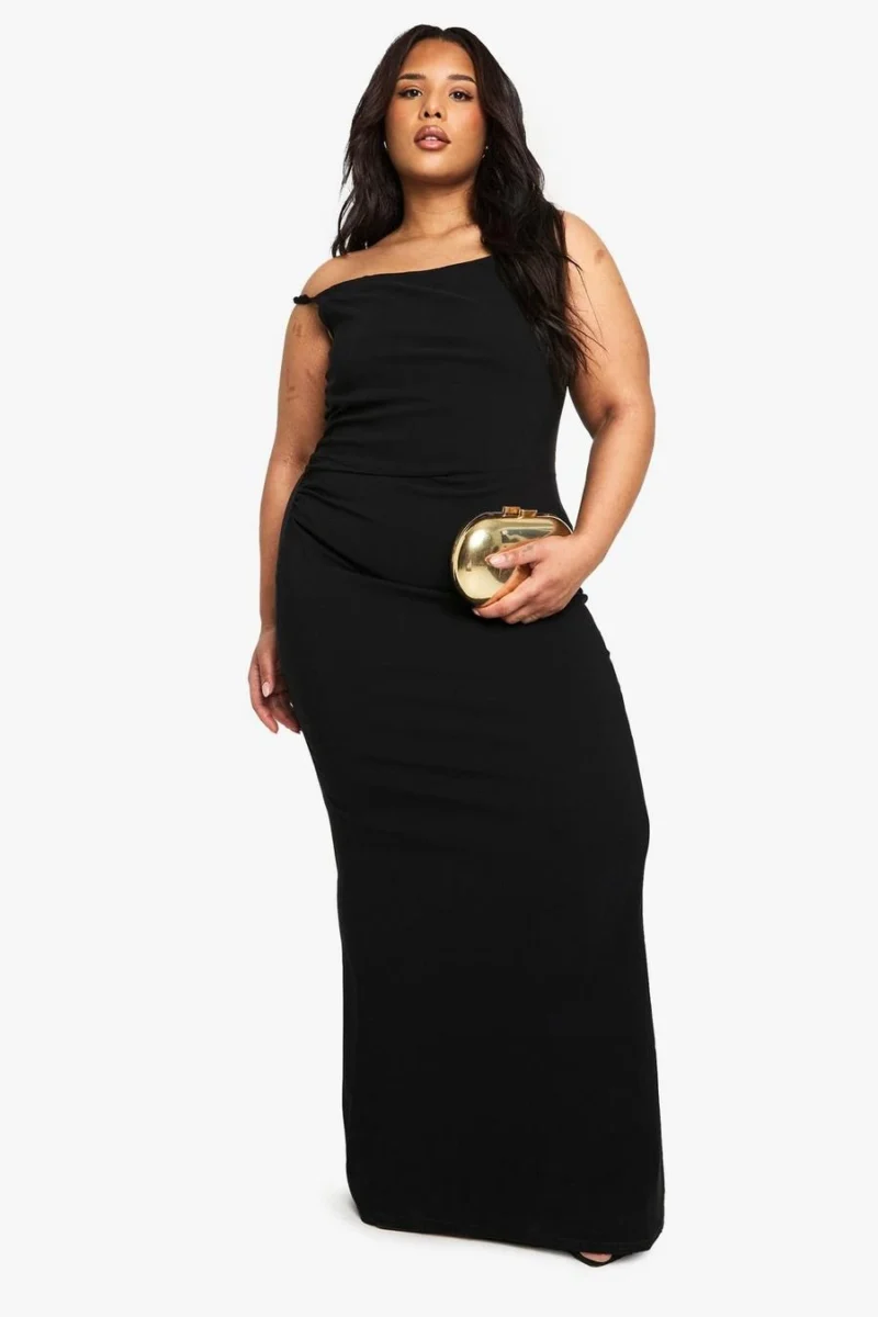 BOOHOO PLUS ASYMMETRIC KNOT DETAIL BENGALINE MAXI DRESS