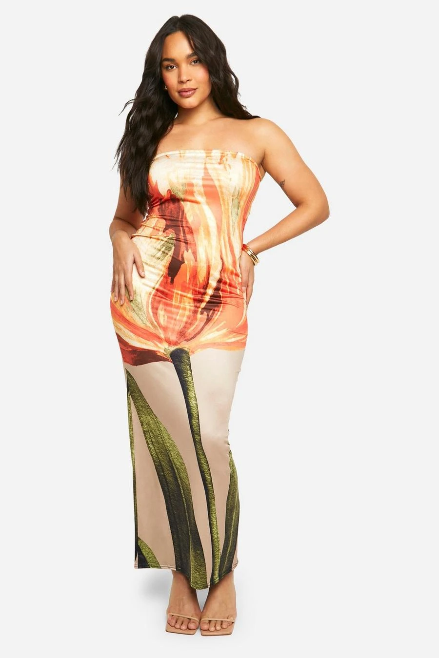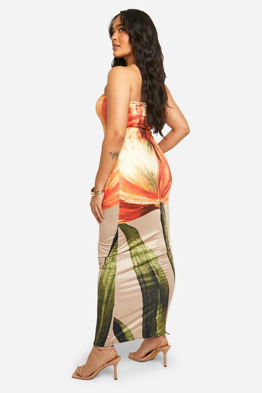 BOOHOO Plus Bandeau Floral Printed Slinky Maxi Dress