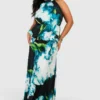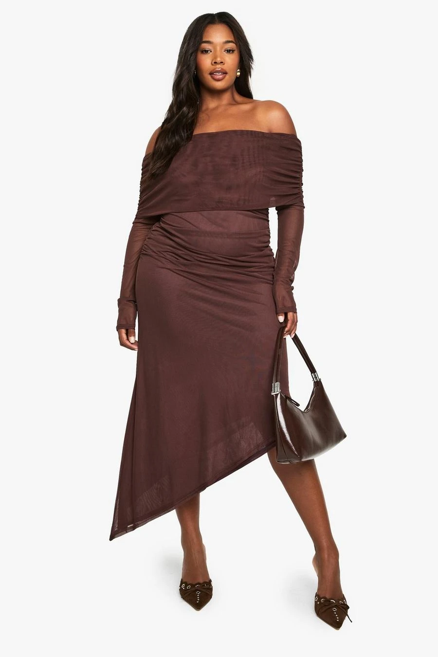 BOOHOO PLUS BARDOT LONG SLEEVE ASYMMETRIC HEM MAXI DRESS