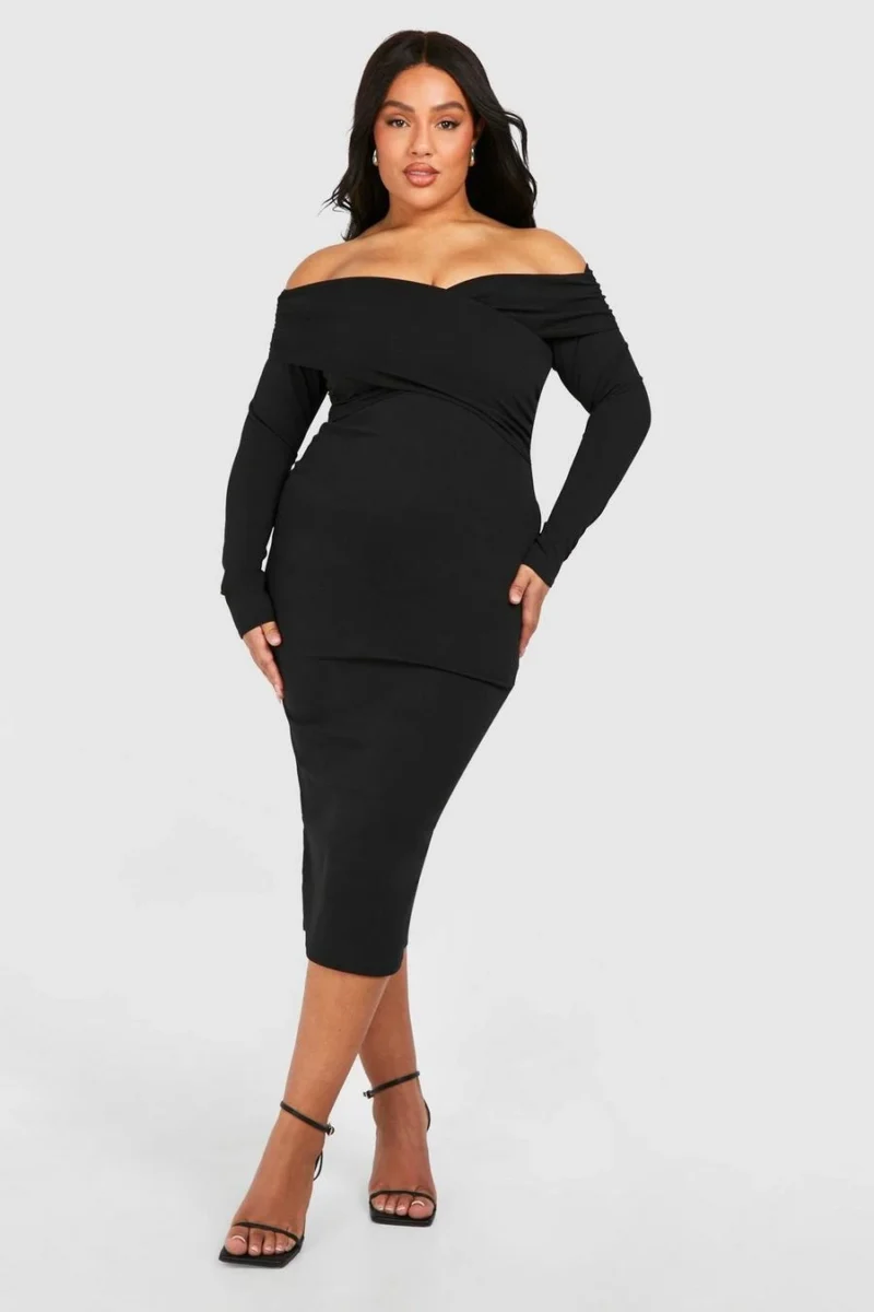 BOOHOO Plus Bardot Ruched Midi Dress