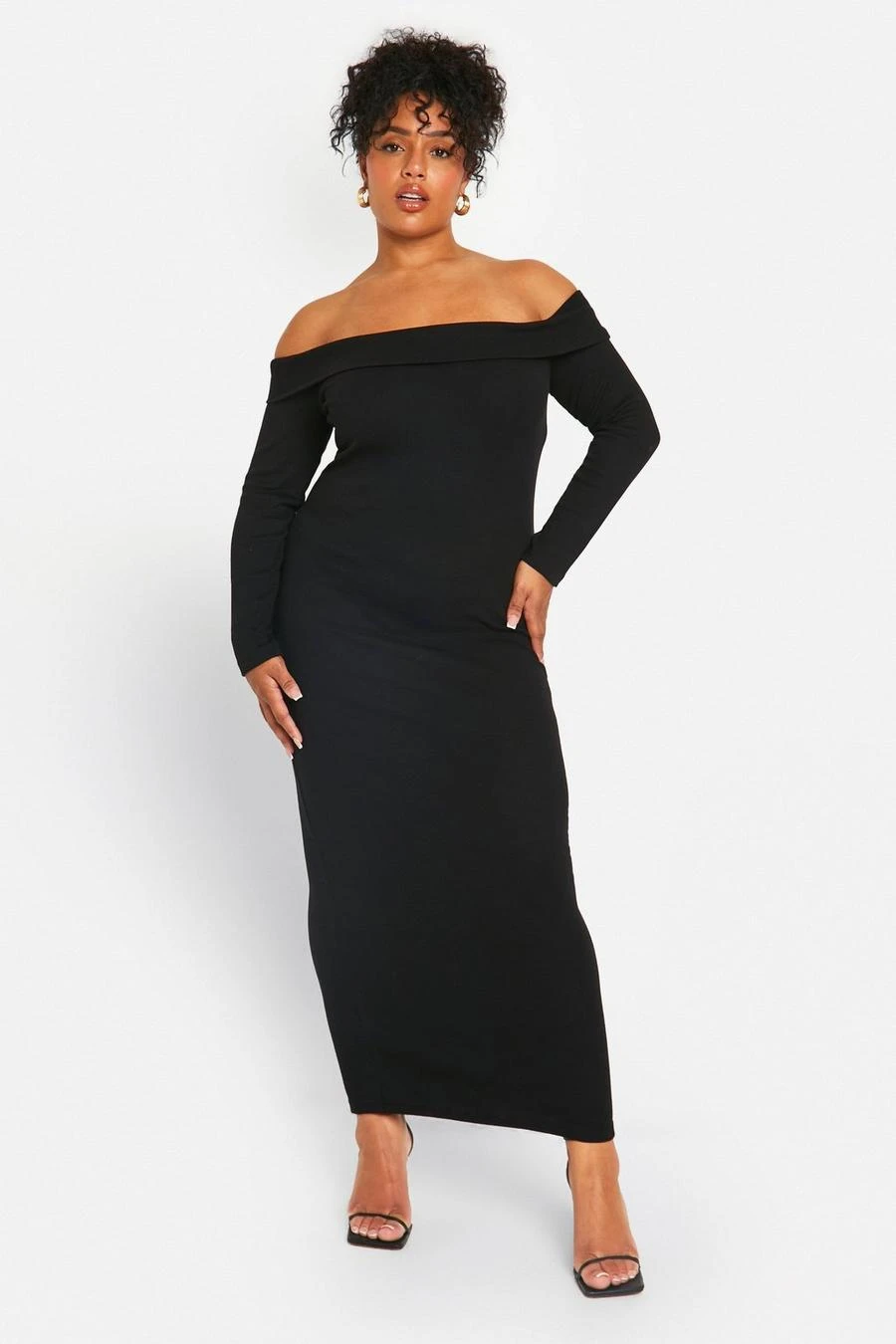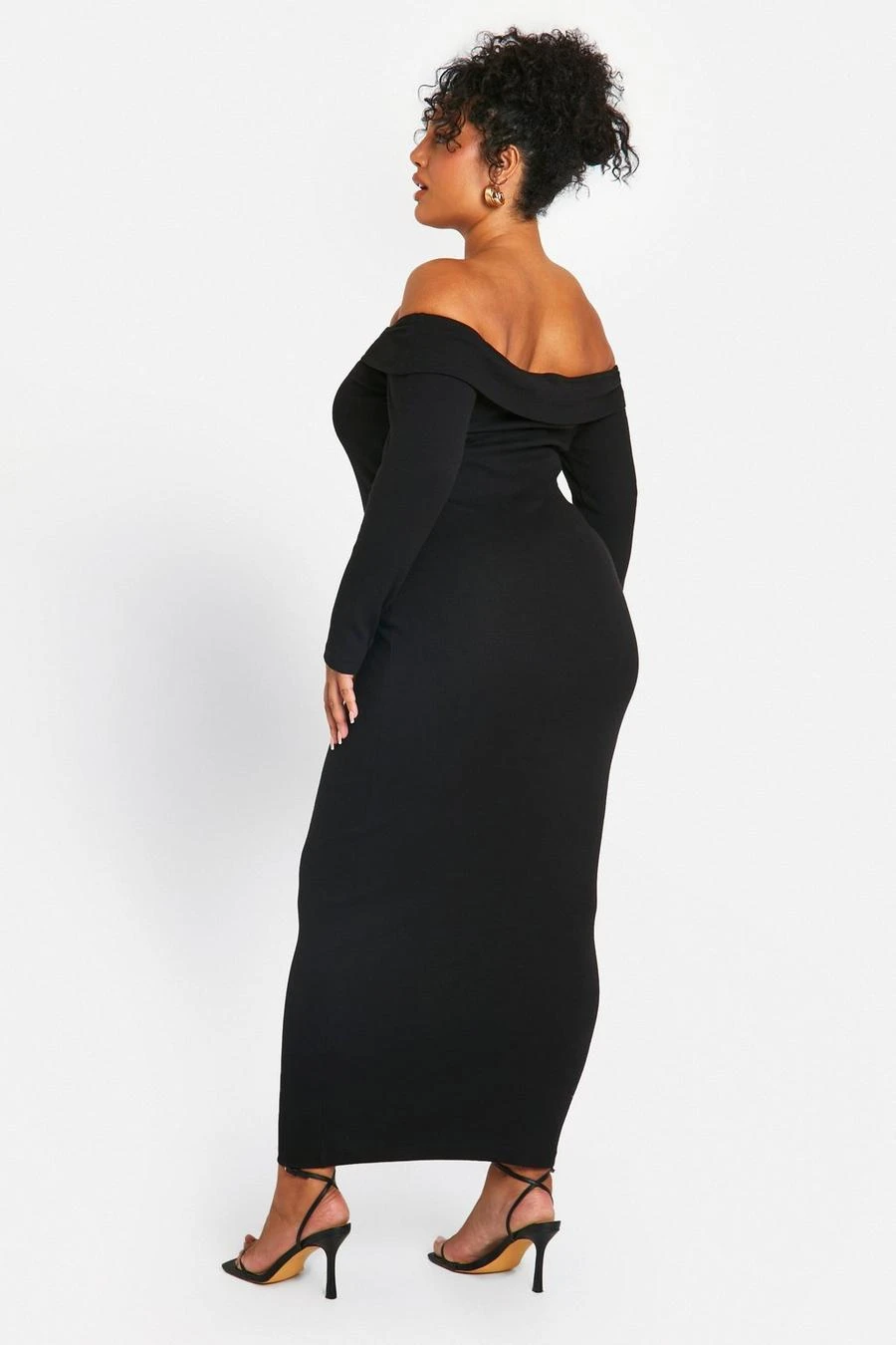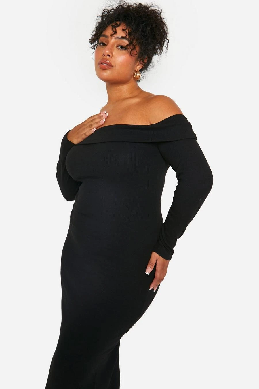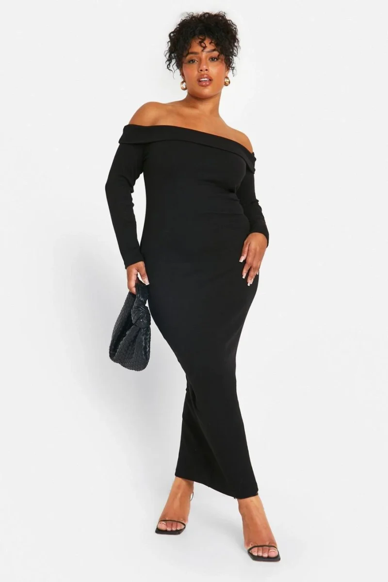 BOOHOO Plus Basic Rib Bardot Maxi Dress