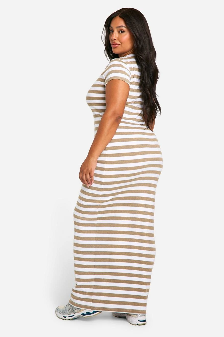 BOOHOO Plus Basic Rib Stripe Cap Sleeve Maxi