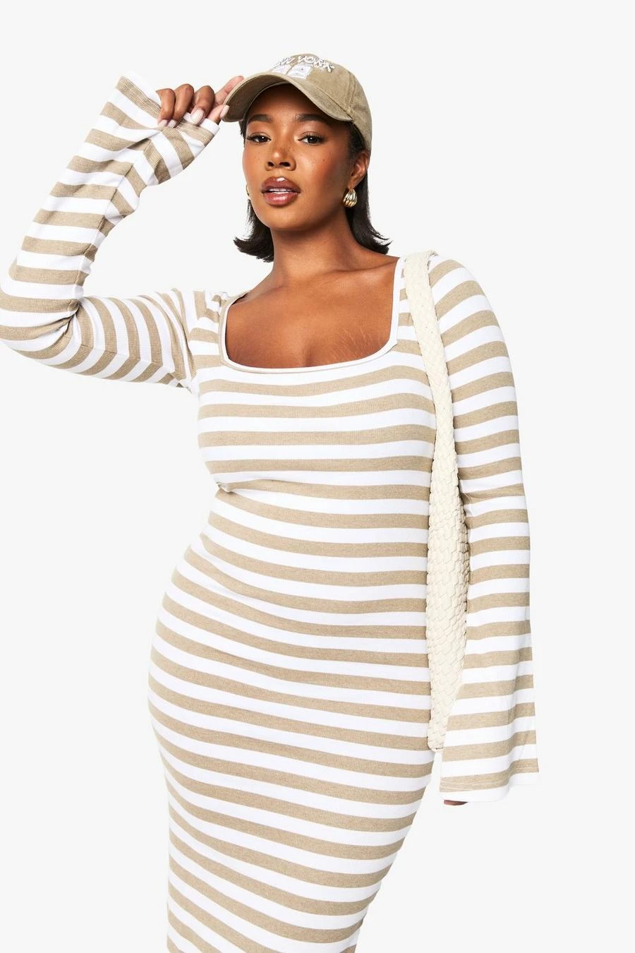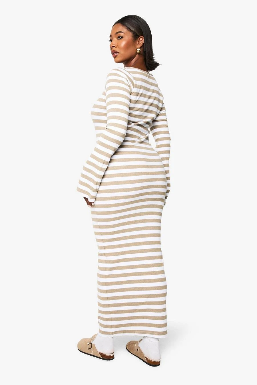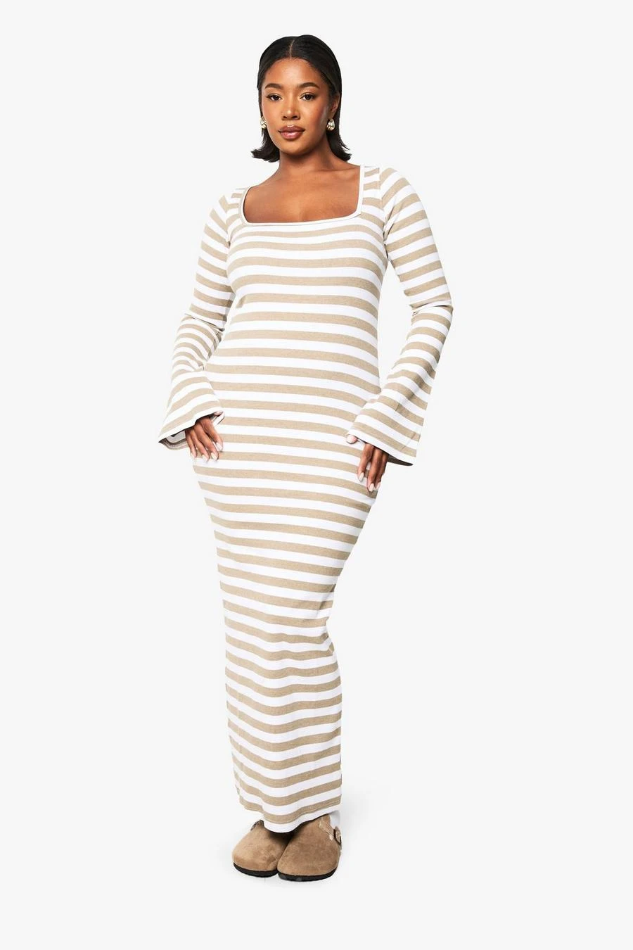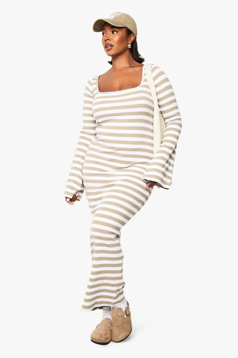 BOOHOO Plus Basic Rib Stripe Square Neck Maxi