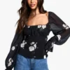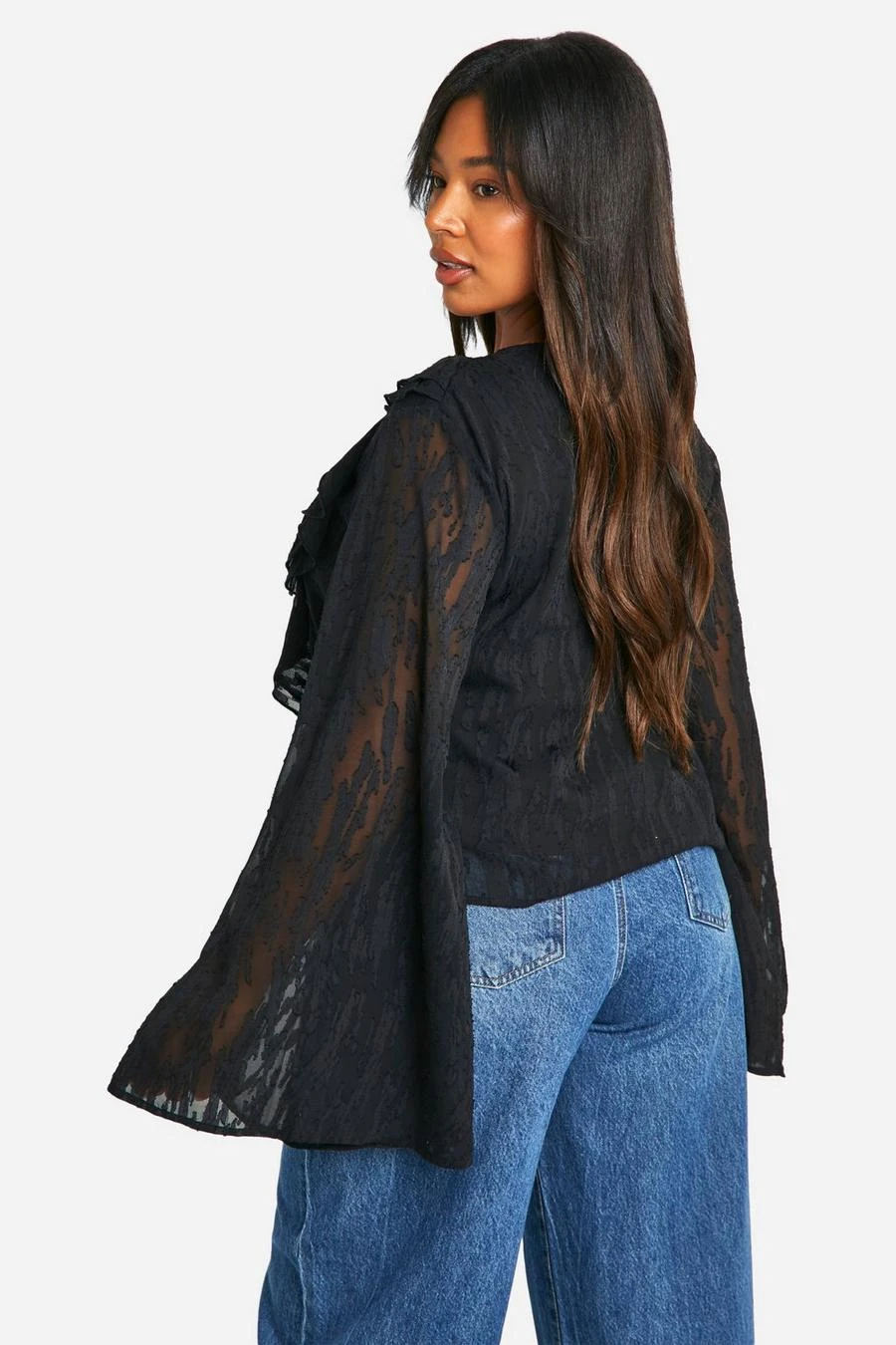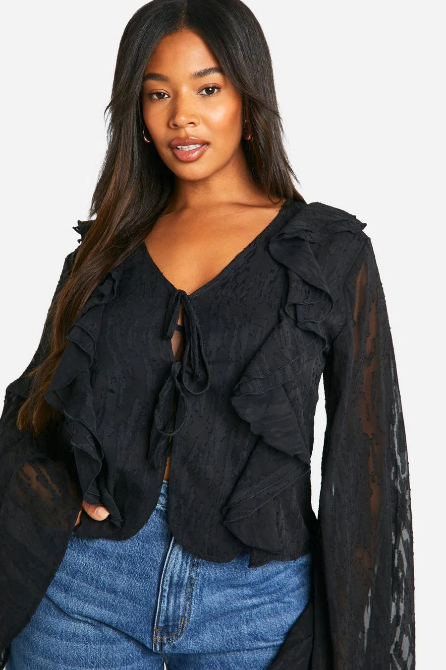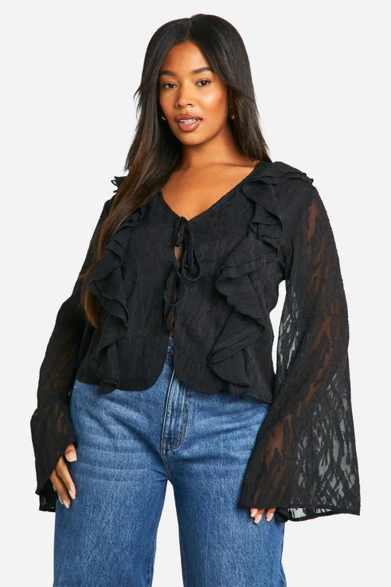 BOOHOO Plus Burnout Animal Tie Front Ruffle Blouse