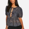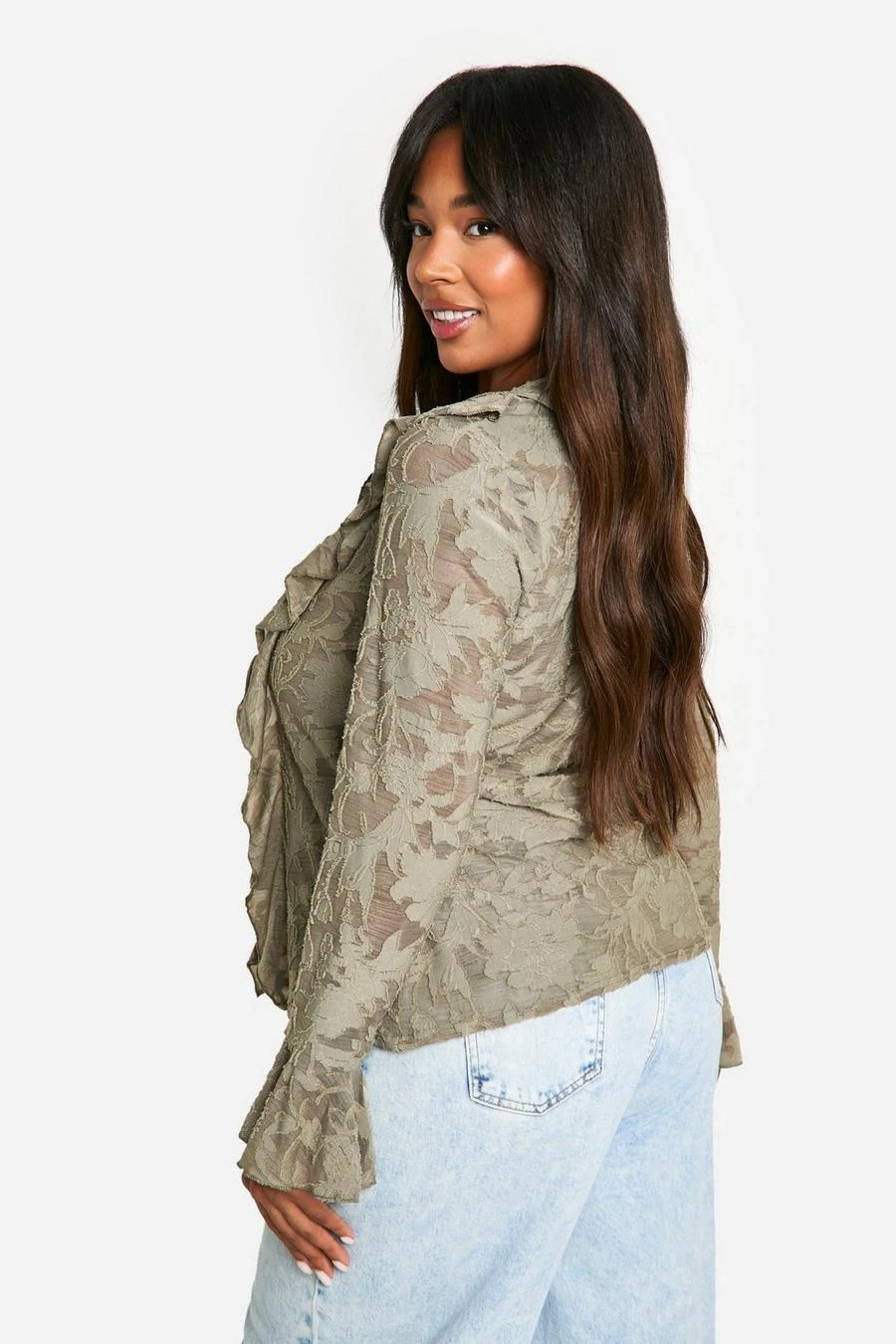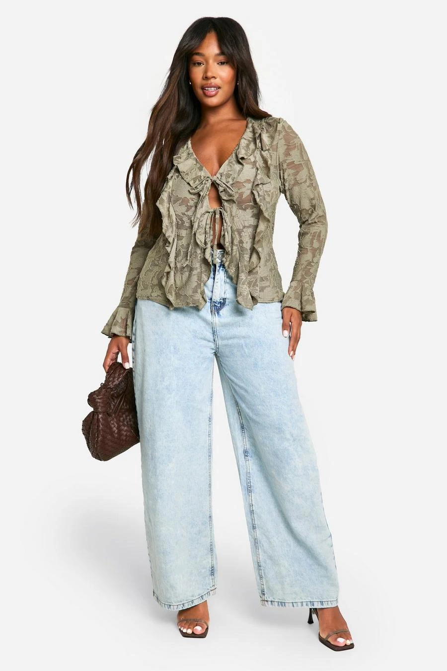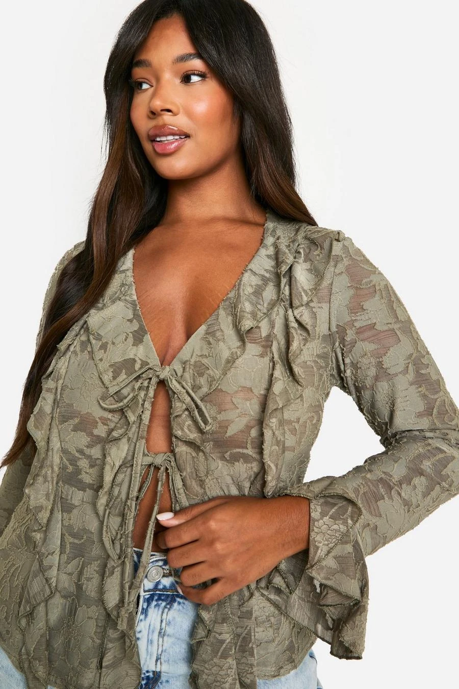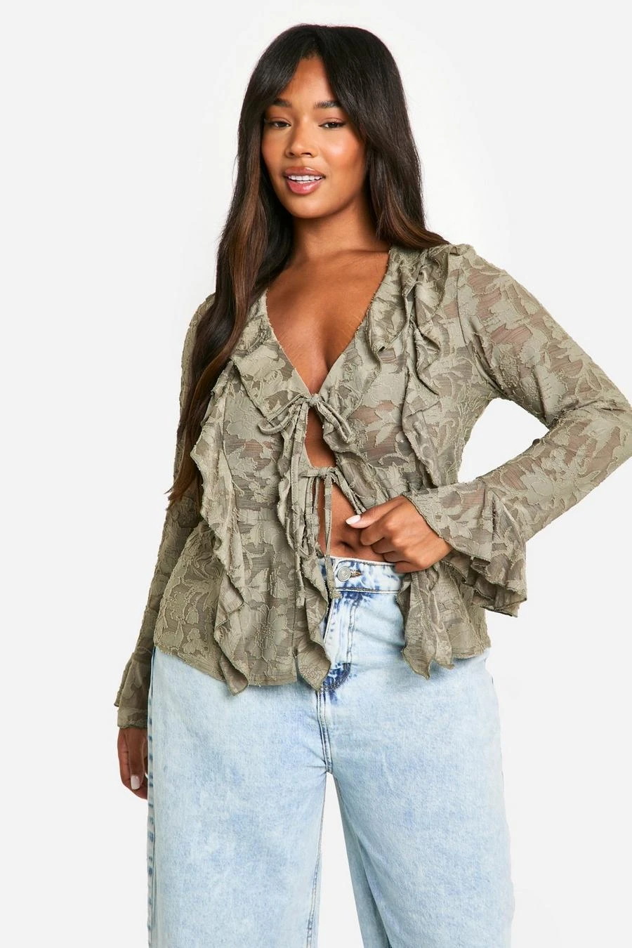 BOOHOO Plus Burnout Double Ruffle Tie Front Blouse