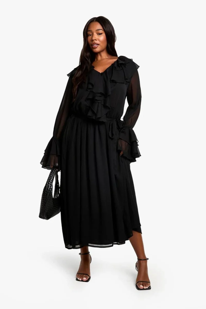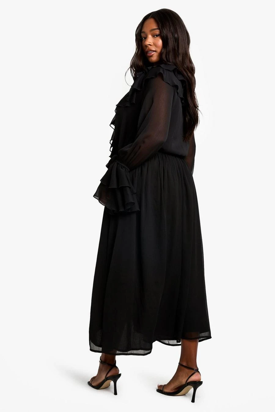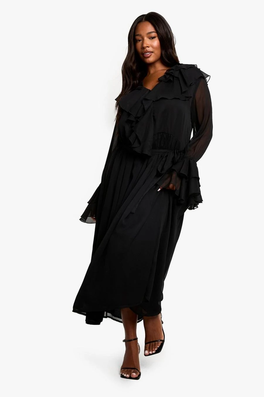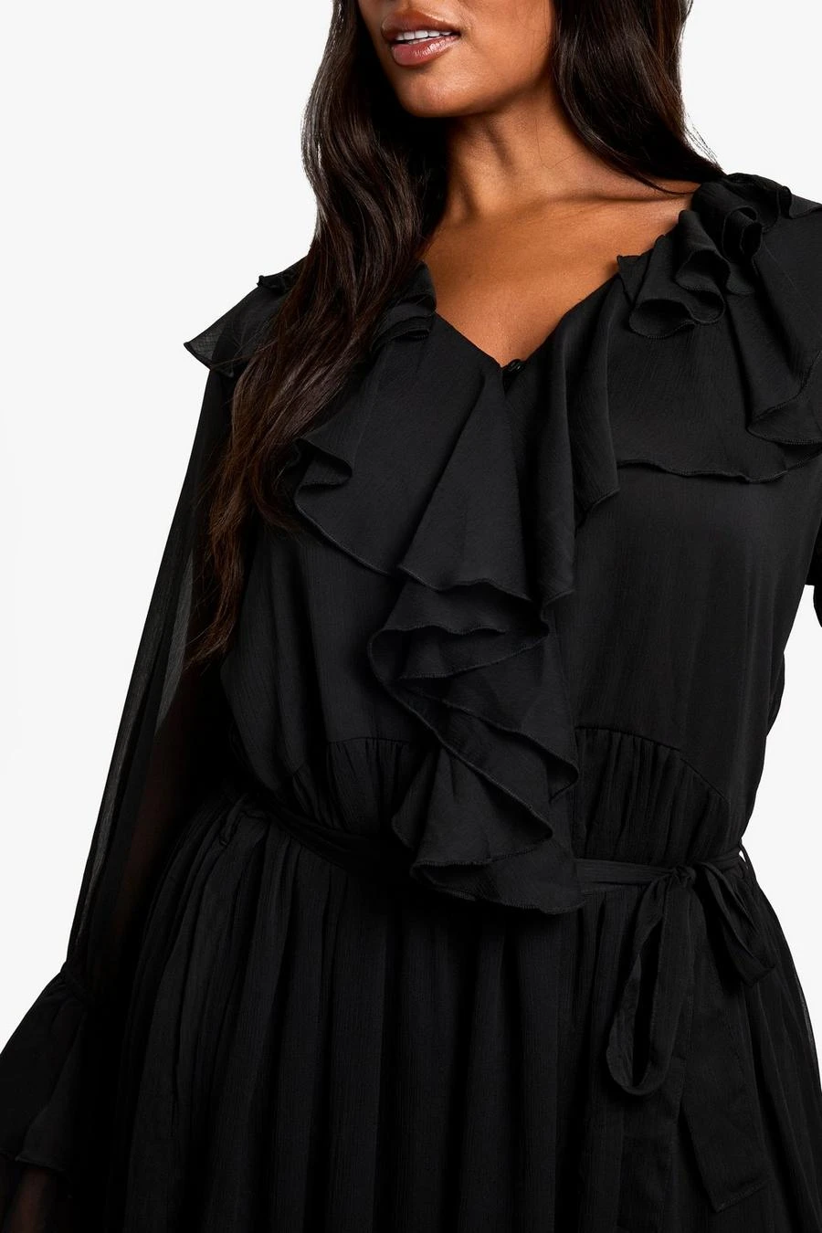 BOOHOO Plus Chiffon Ruffle Tie Belt Skater Maxi Dress