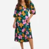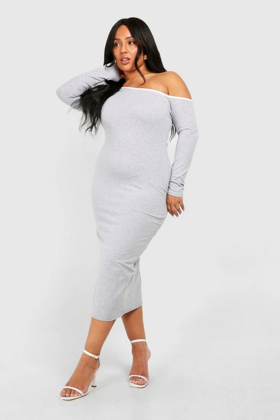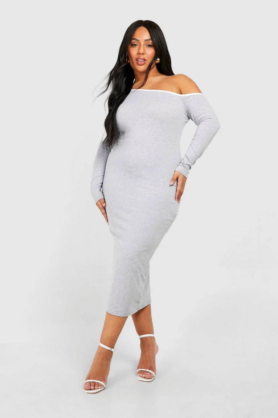 BOOHOO Plus Cotton Elastance Contrast Off Shoulder Midi Dress