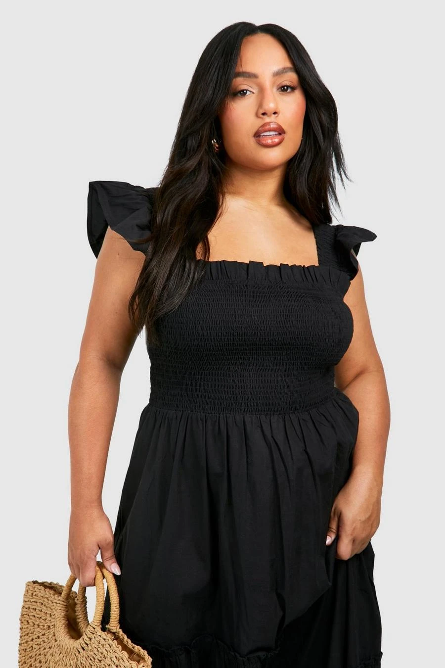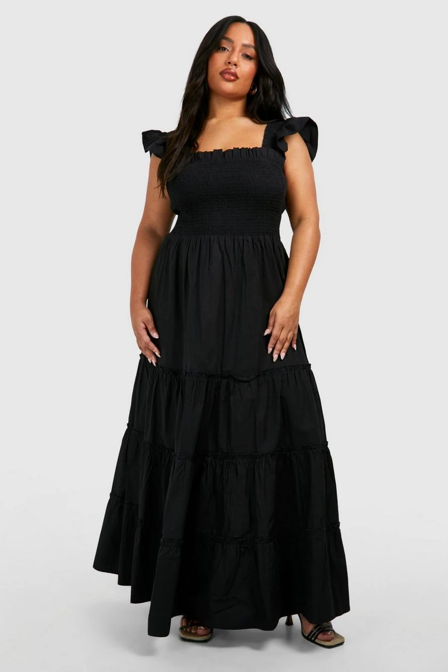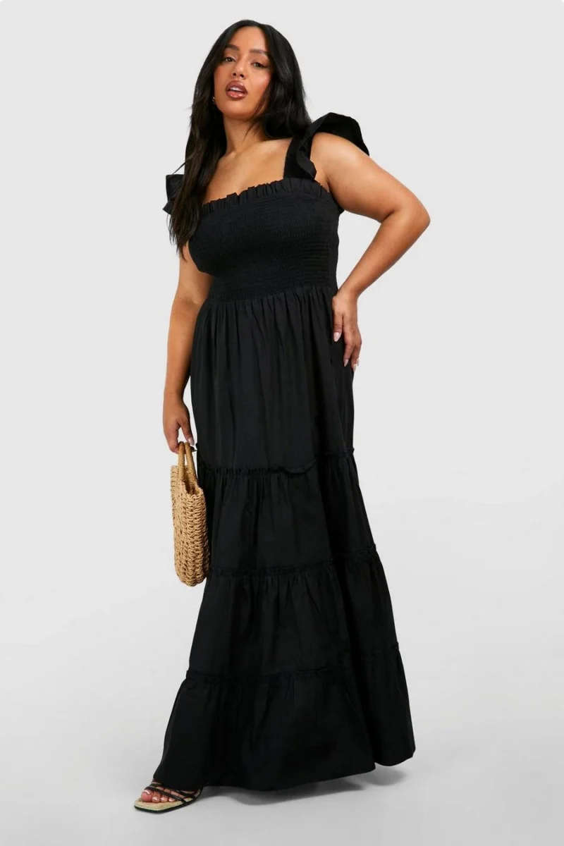 BOOHOO Plus Cotton Frill Sleeve Maxi Smock Dress