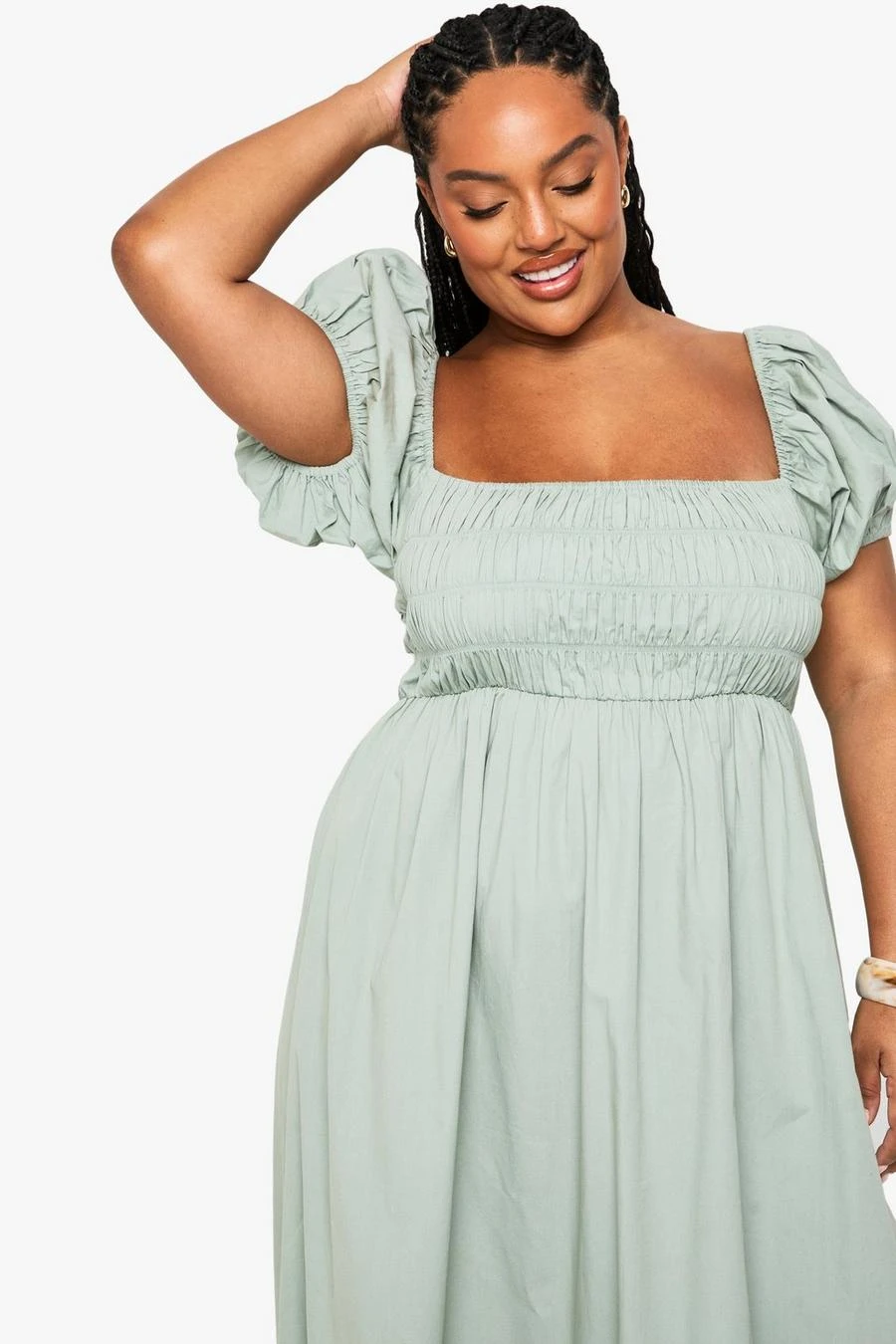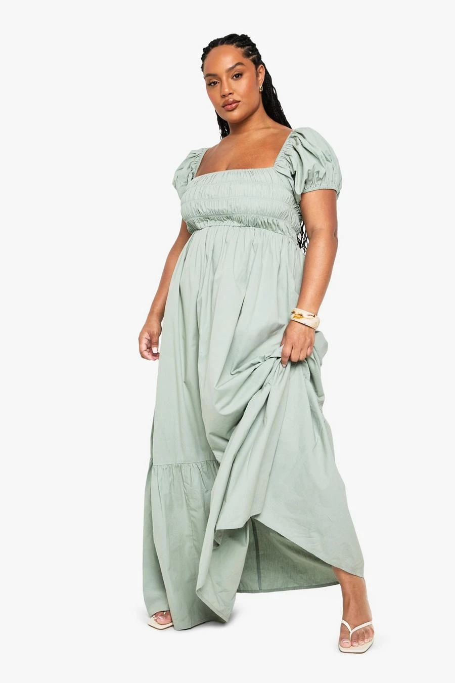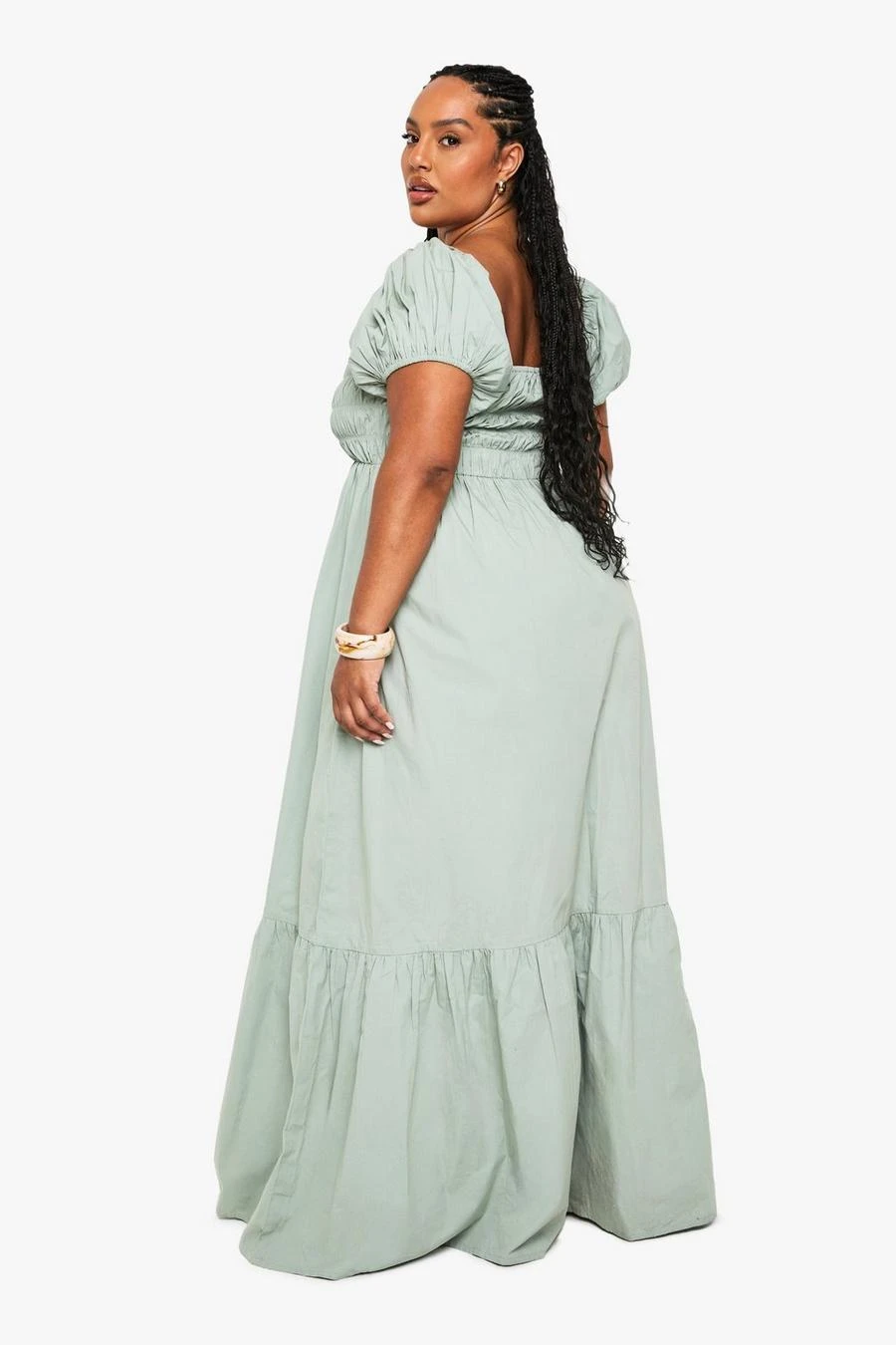 BOOHOO Plus Cotton Poplin Puff Sleeve Maxi Dress