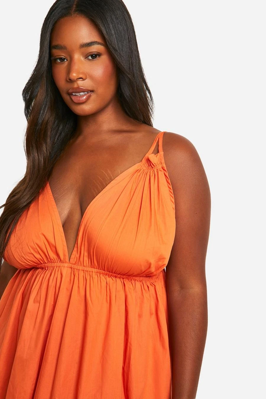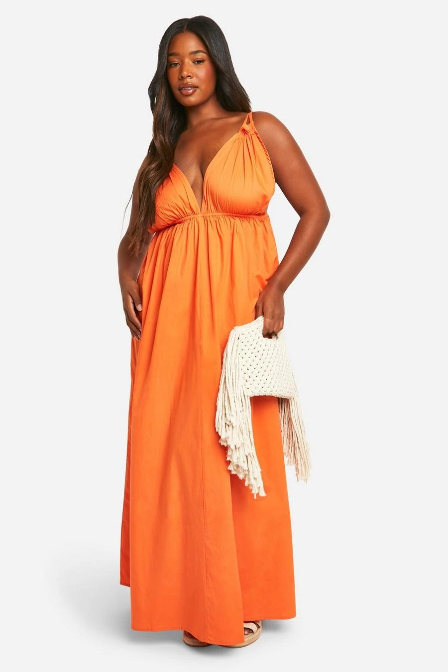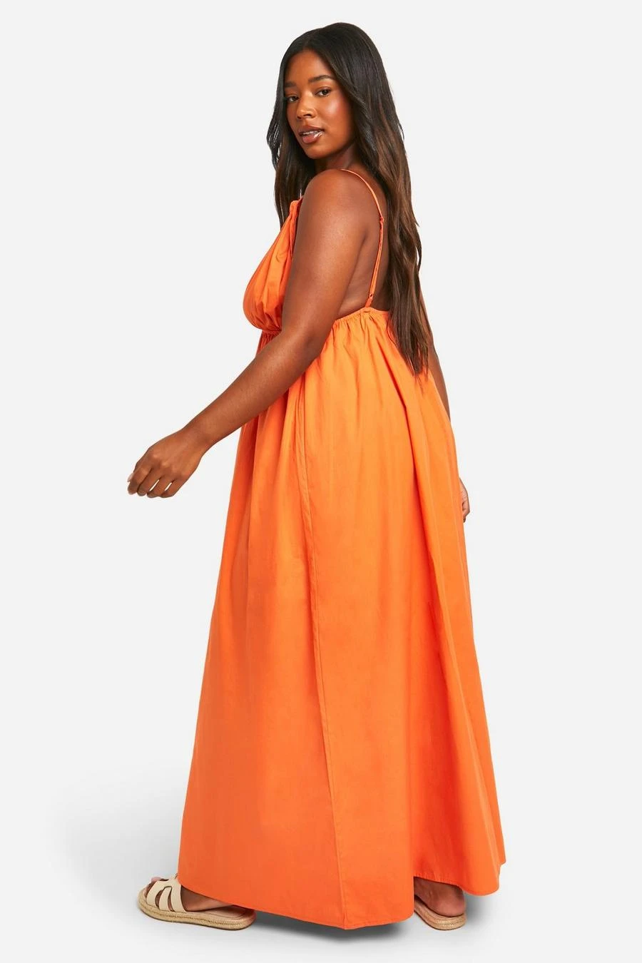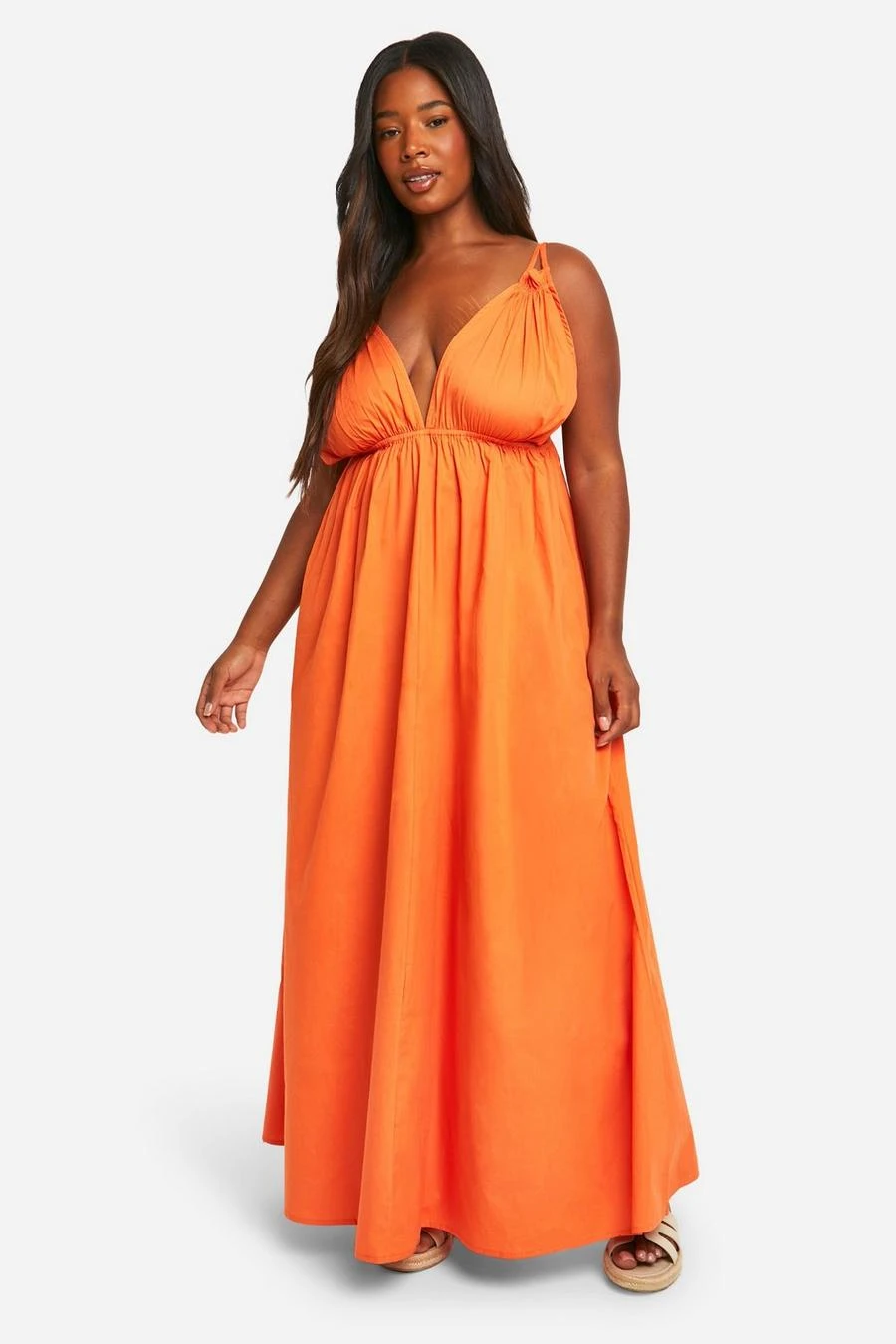 BOOHOO Plus Cotton Poplin Strappy Maxi Dress